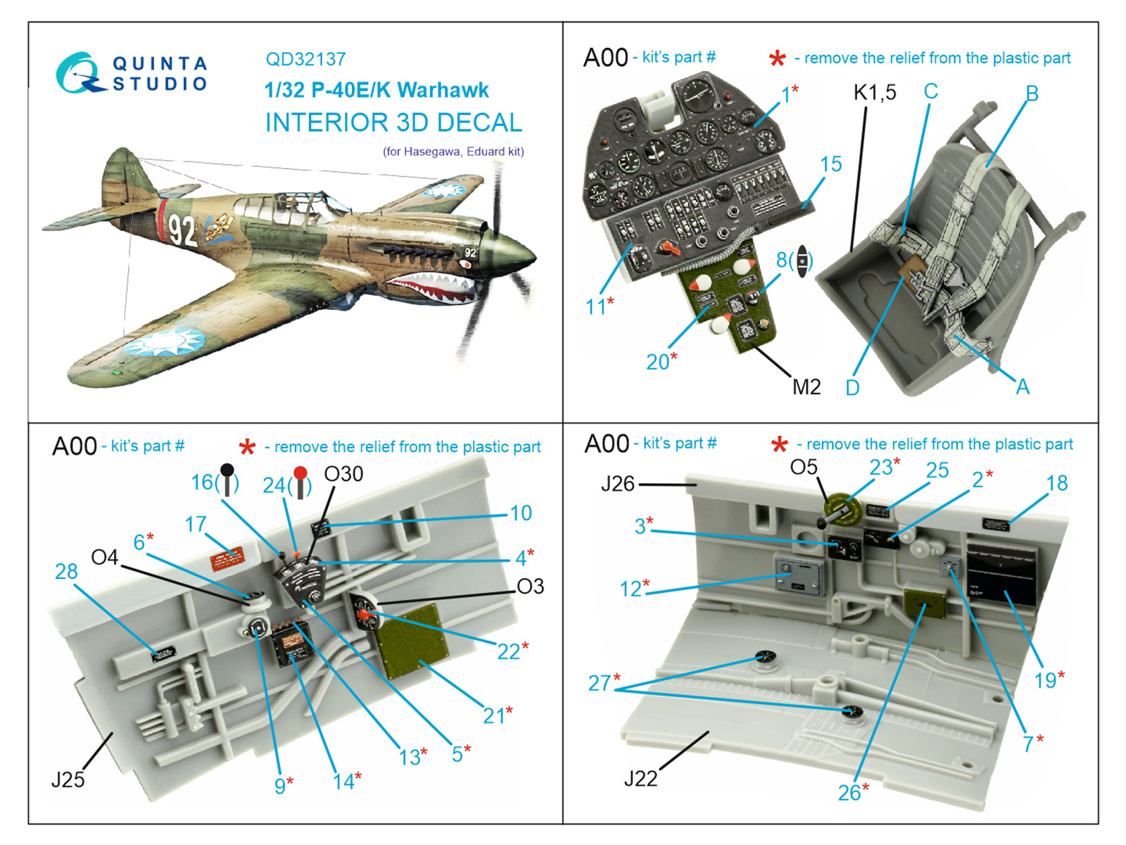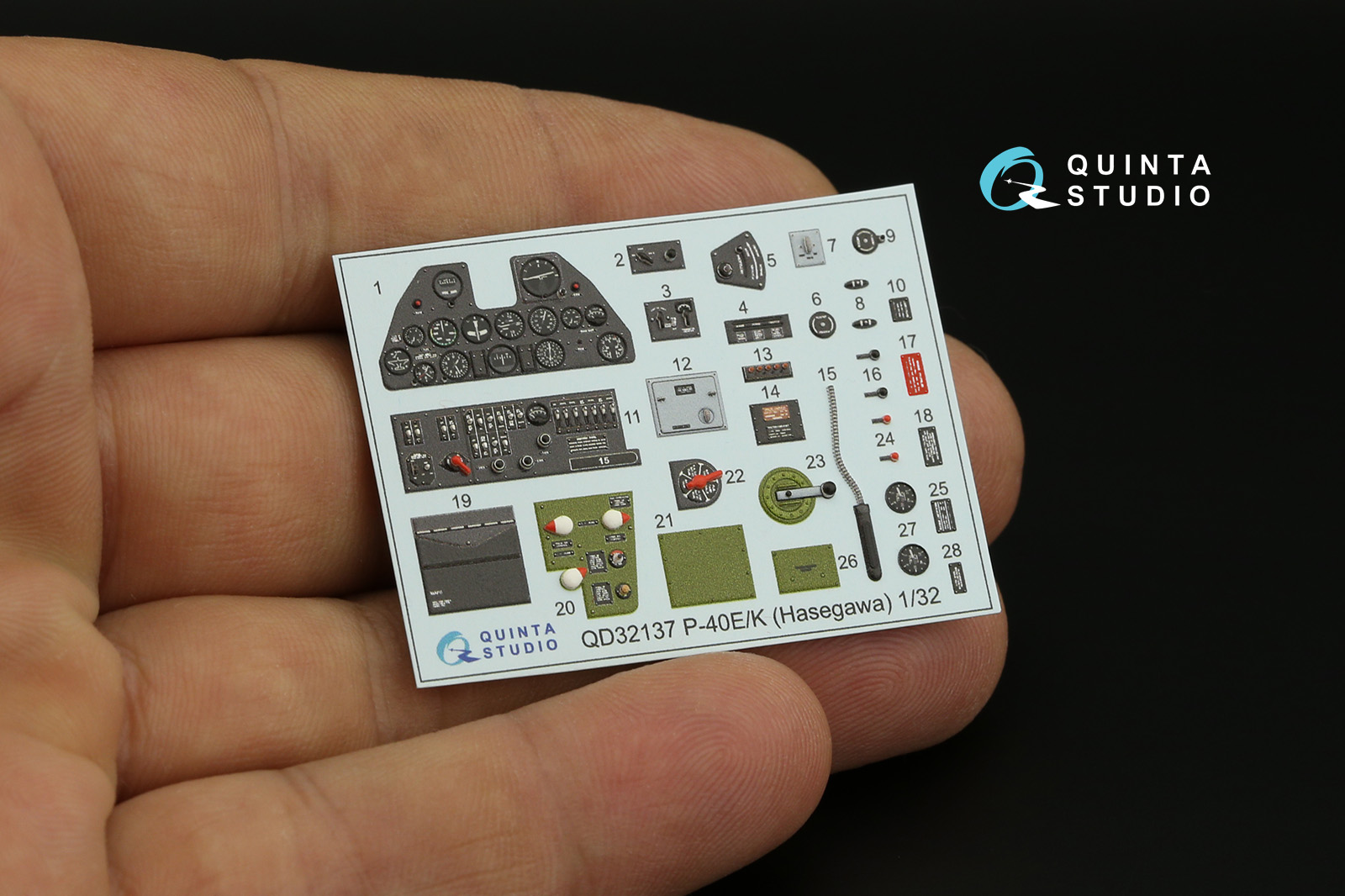 Quinta Studio - 1/32 Curtiss P-40E/K Warhawk 3D-Printed & coloured Interior on decal paper (for Hasegawa kits)