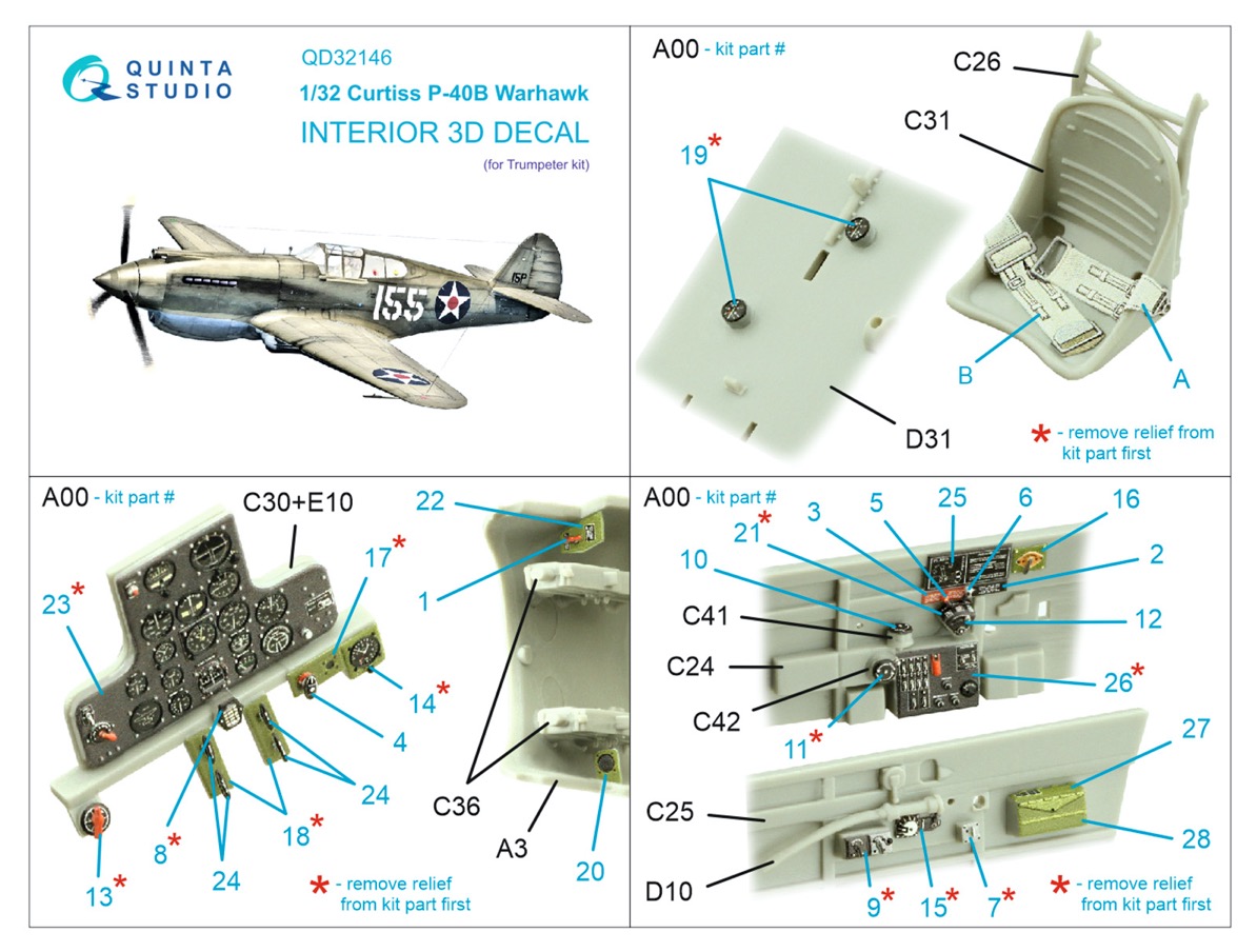 Quinta Studio - 1/32 P-40B Warhawk Interior for Trumpeter