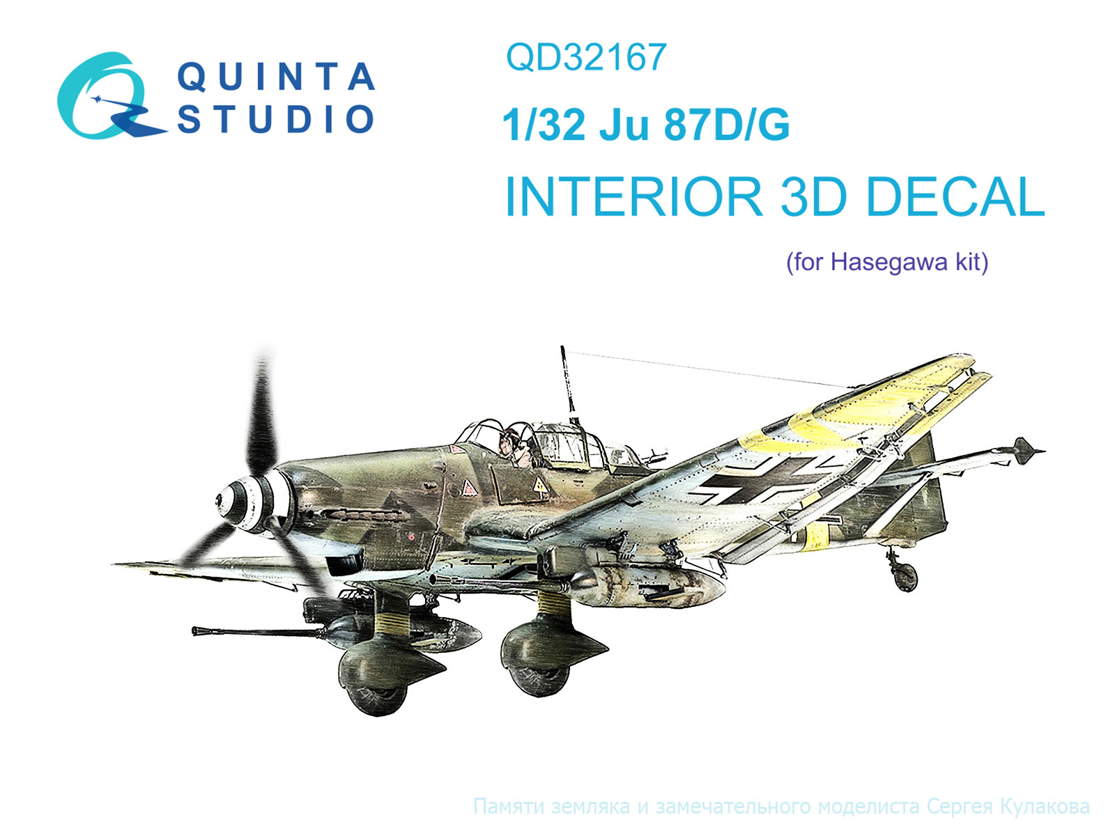 Quinta Studio - 1/32 Junkers Ju-87D/G Stuka 3D-Printed & coloured Interior on decal paper (for Hasegawa kits)