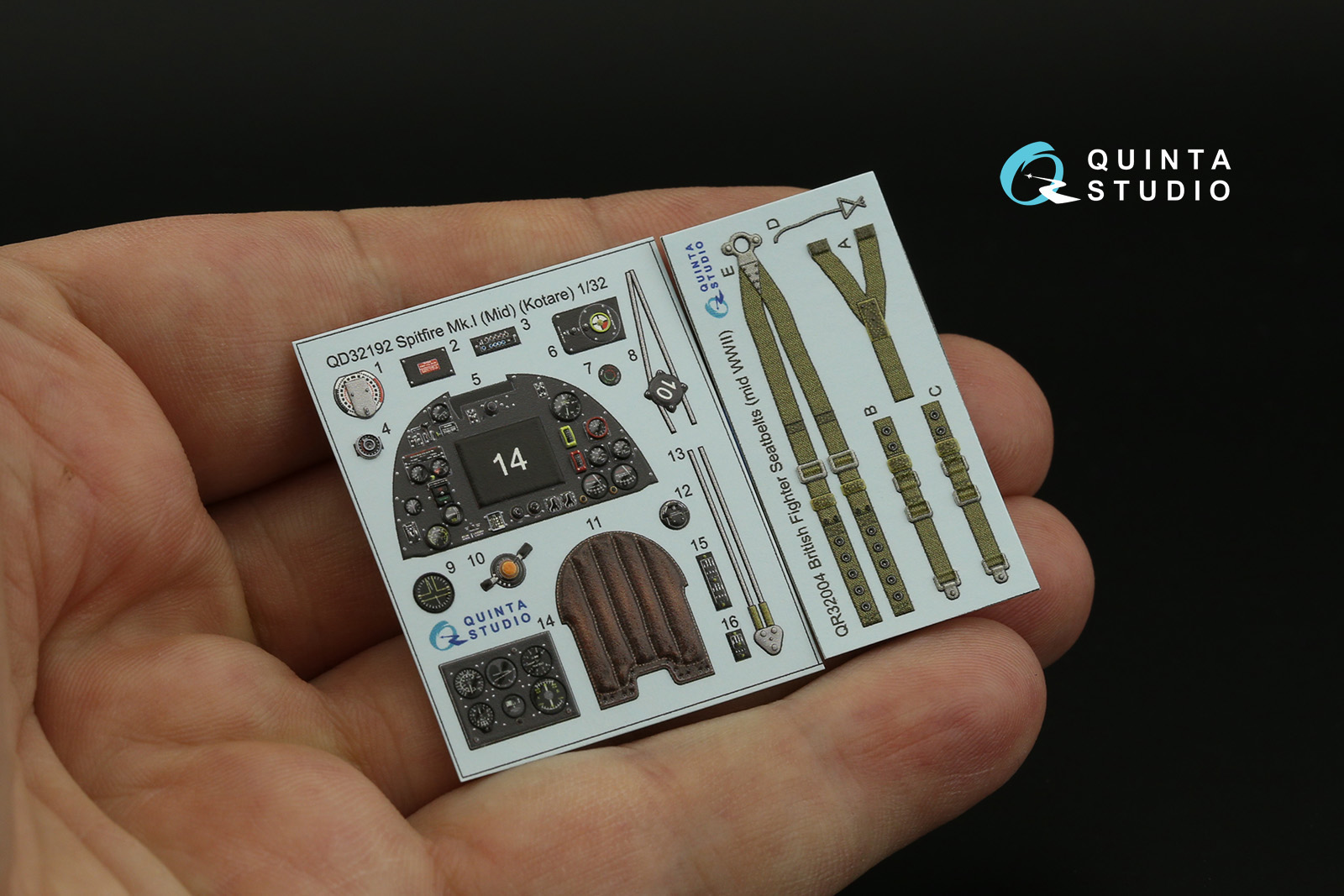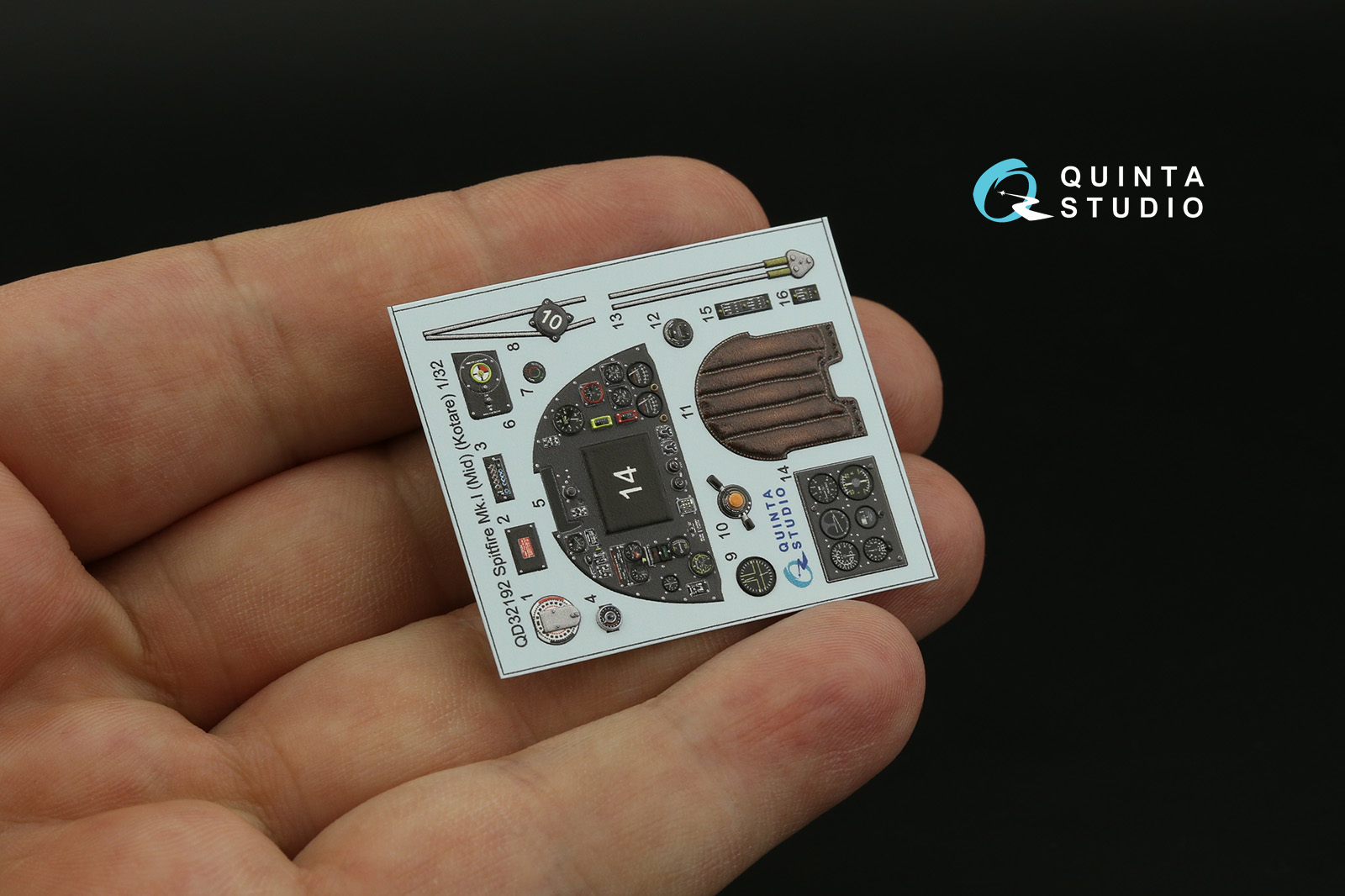 Quinta Studio - 1/32 Supermarine Spitfire Mk.Ia (Mid) 3D-Printed & coloured Interior on decal paper (for Kotare kits)