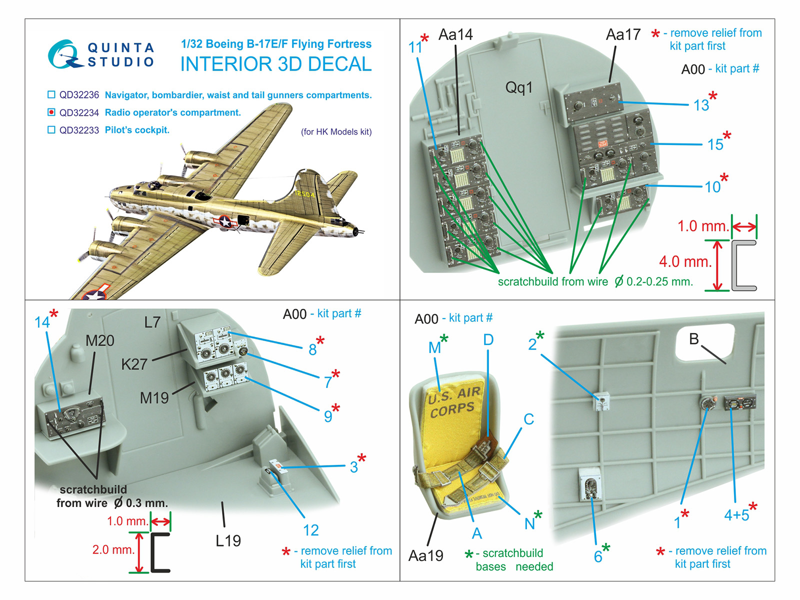 Quinta Studio - 1/32 Boeing B-17E/B-17F Flying Fortress Radio operator's compartment 3d-Printed & coloured Interior for Hong Kong Model