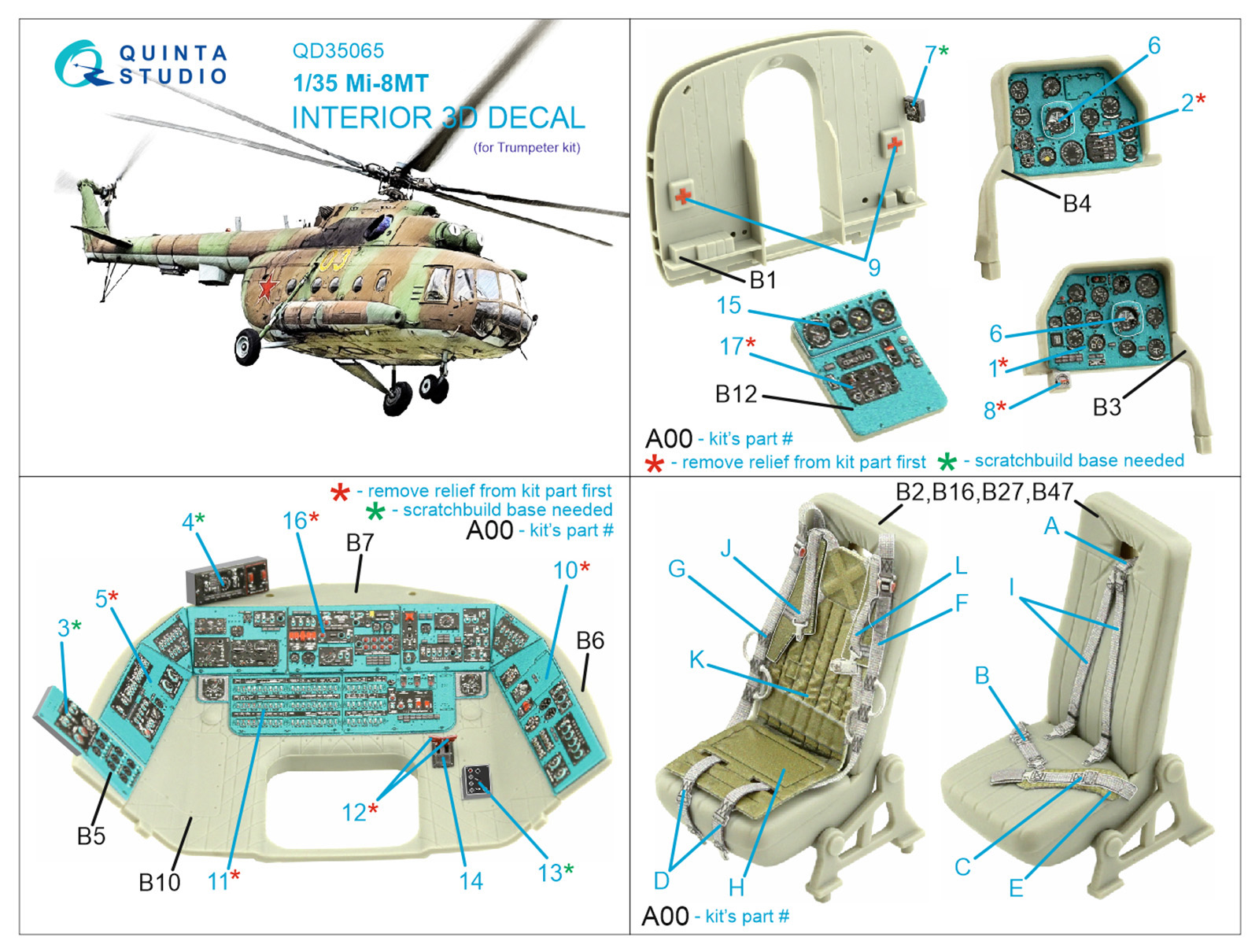 Quinta Studio - 1/35 Mil Mi-8MT 3D-Printed & coloured Interior on decal paper (for Trumpeter kits)