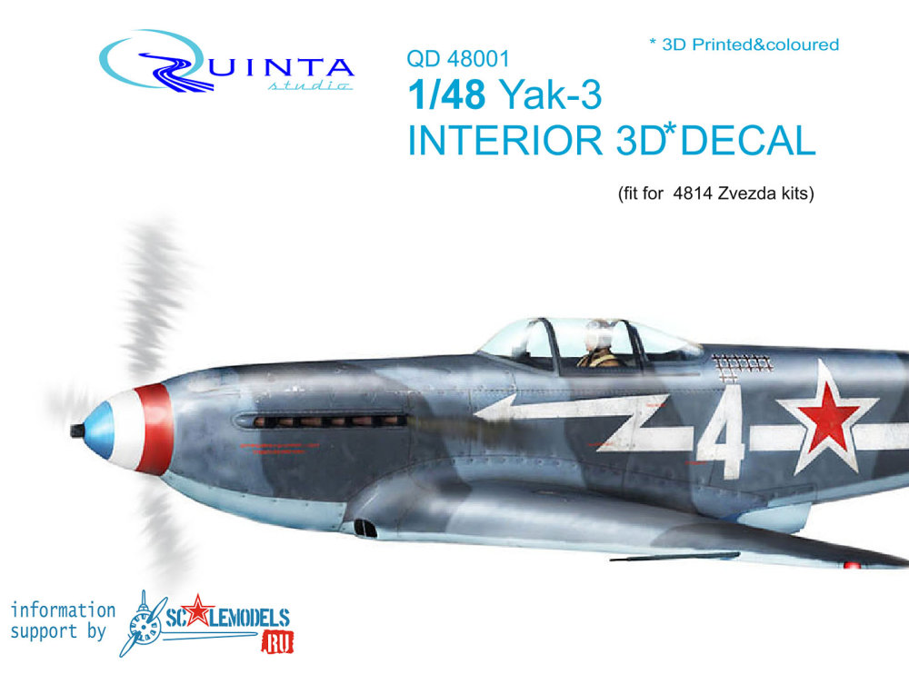 QUINTA STUDIO - 1/48 Yak-3 3D-Print & colour Interior (ZVE) decal