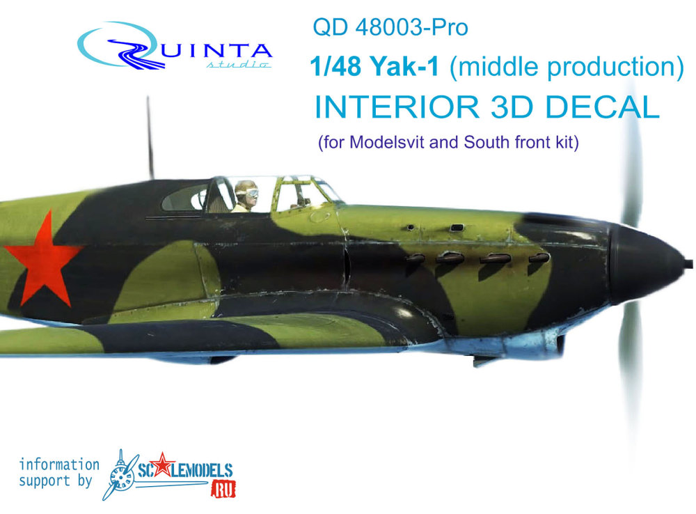 Quinta Studio - 1/48 Yak-1 (mid. production) 3D-Printed & coloured Interior on decal paper (for all kits)