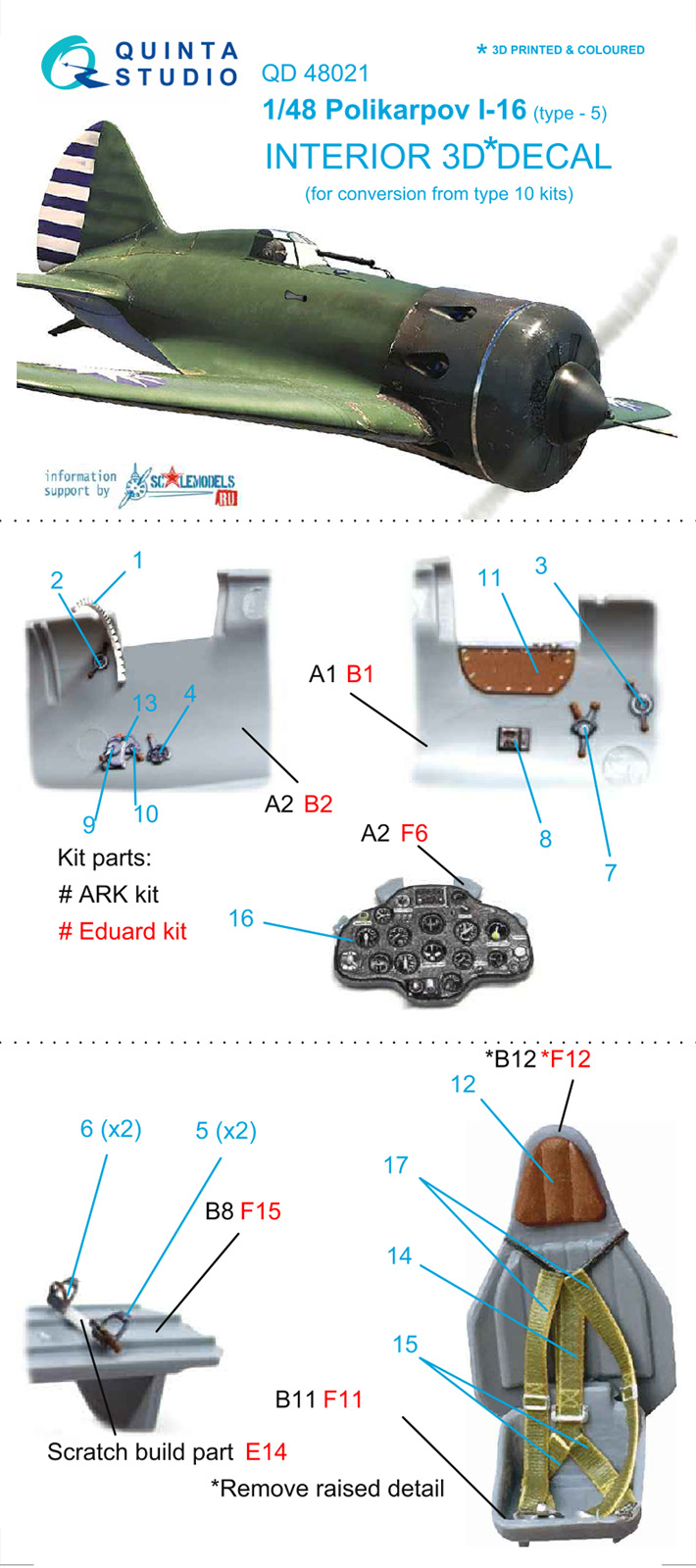 QUINTA STUDIO - 1/48 I-16 type 5 3D-Print & colour Interior decal