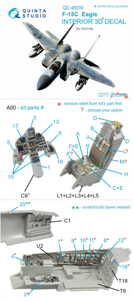 QUINTA STUDIO - 1/48 F-15C 3D-Printed & colour Interior (GWH)