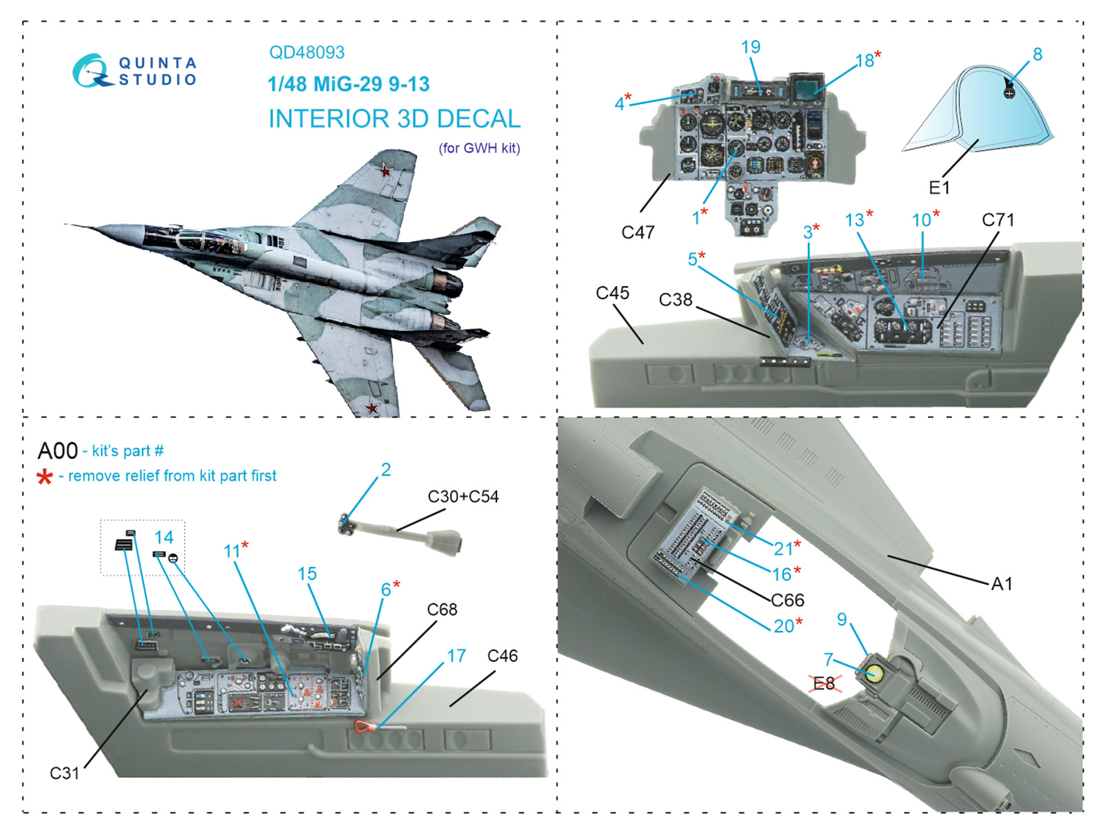 QUINTA STUDIO - 1/48 MiG-29 (9-13) 3D-Printed & color Interior (GWH)