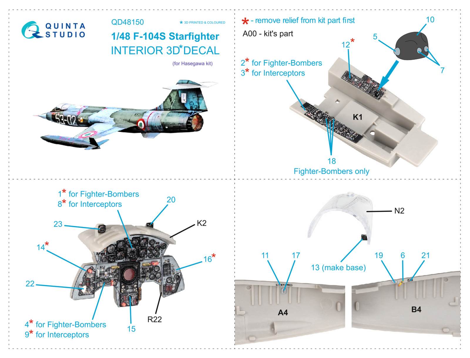 QUINTA STUDIO - 1/48 F-104S 3D-Printed & color Interior (HAS)