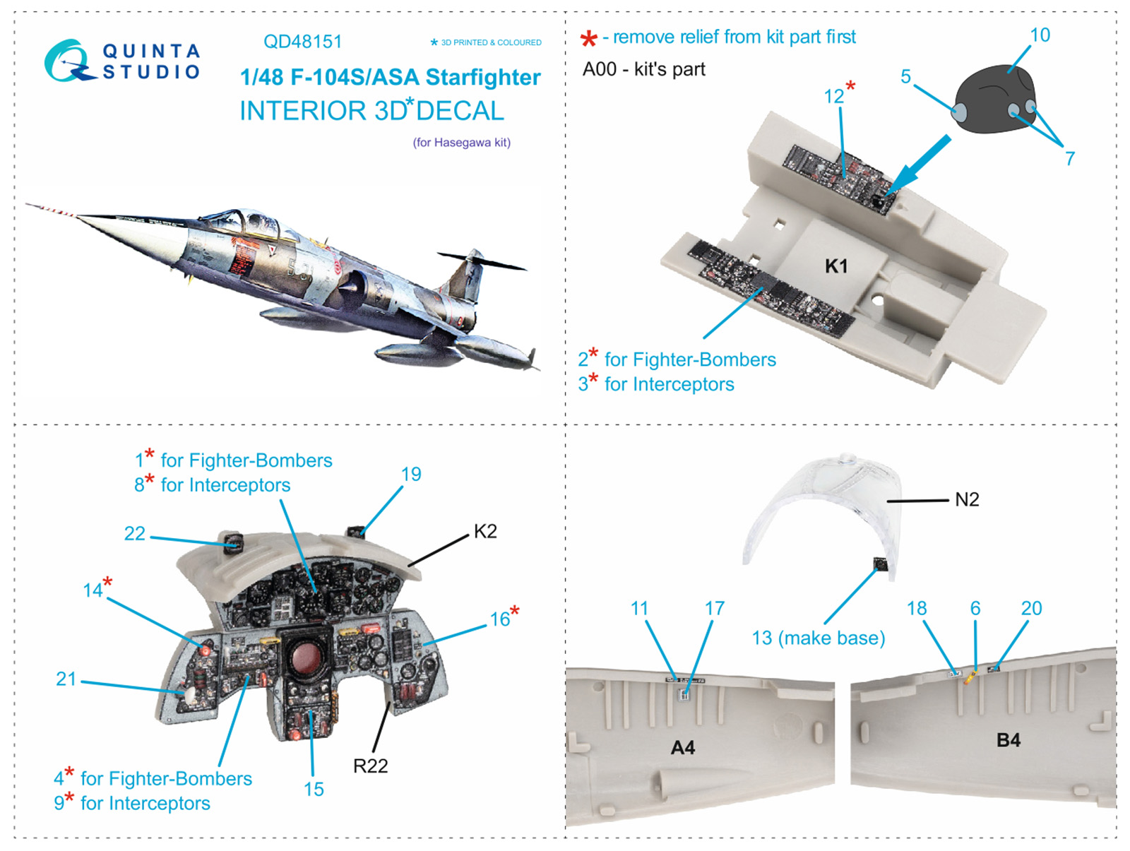 QUINTA STUDIO - 1/48 F-104S-ASA 3D-Printed & color Interior (HAS)