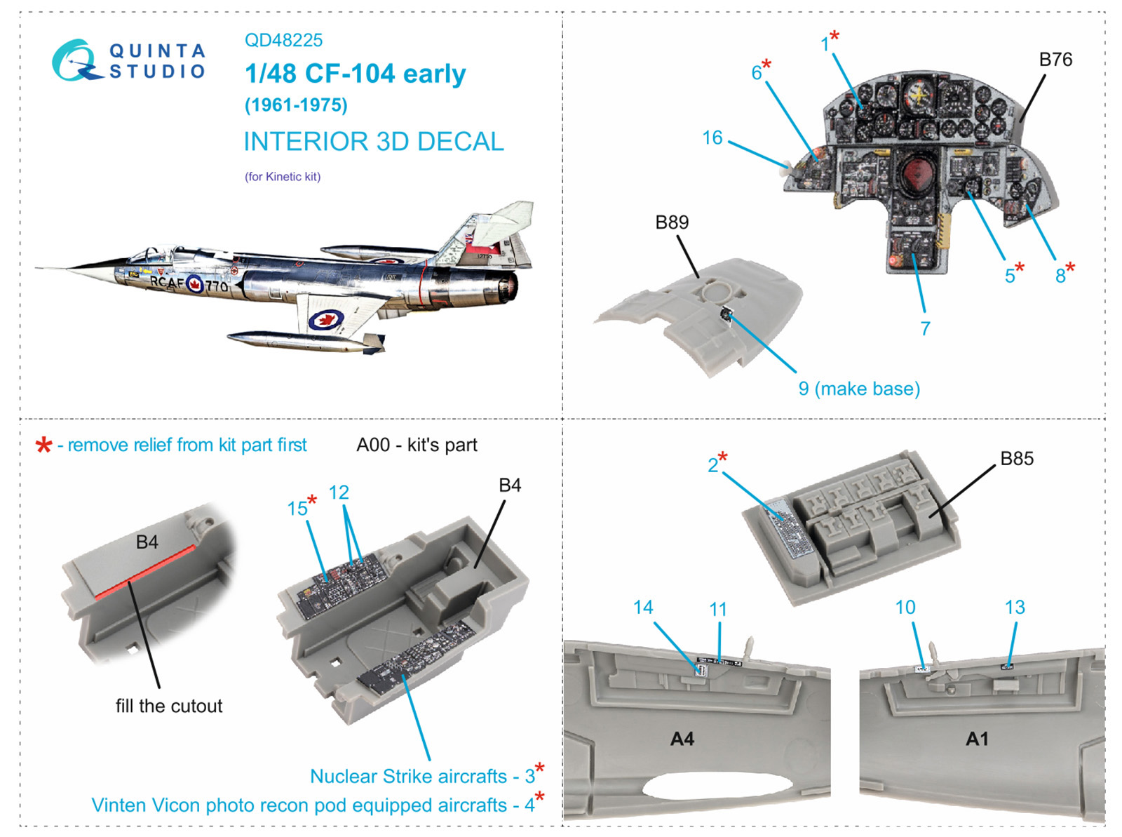 Quinta Studio - 1/48 Lockheed CF-104 Early 3D-Printed & coloured Interior on decal paper (for Kinetic kits)