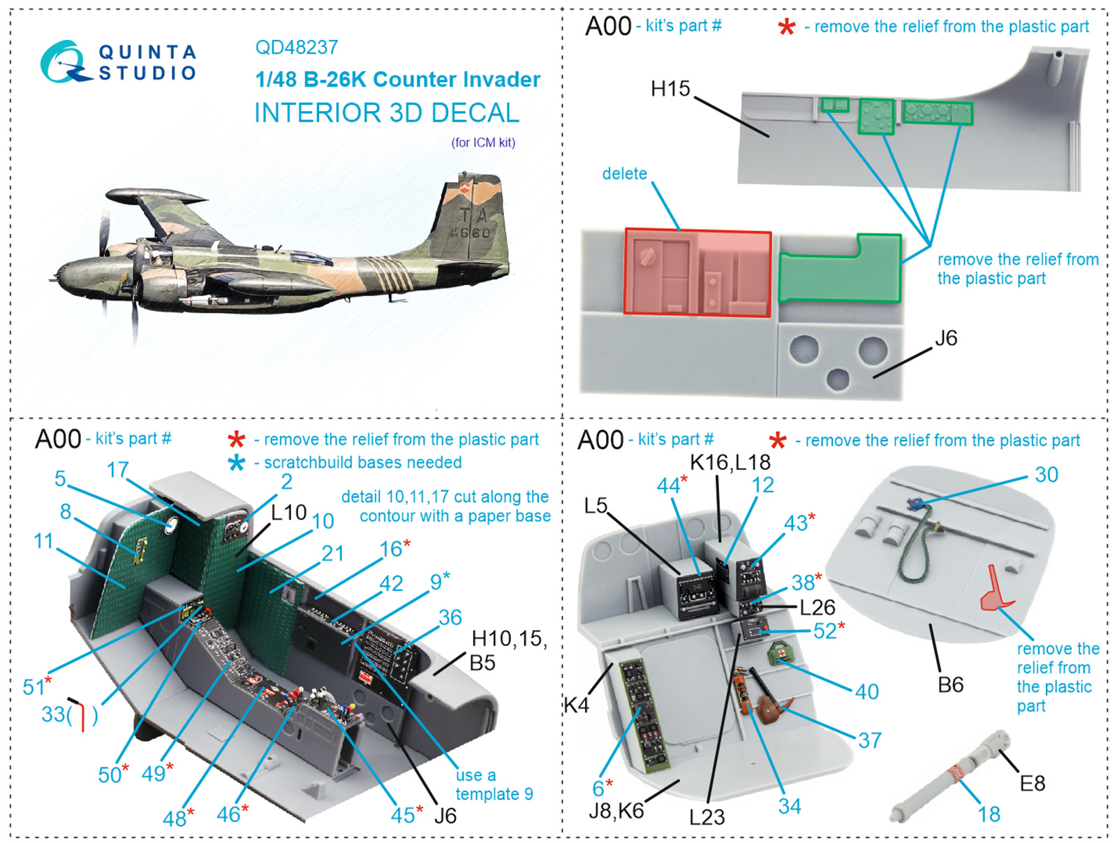 QUINTA STUDIO - 1/48 B-26K 3D-Print & color Interior (ICM)