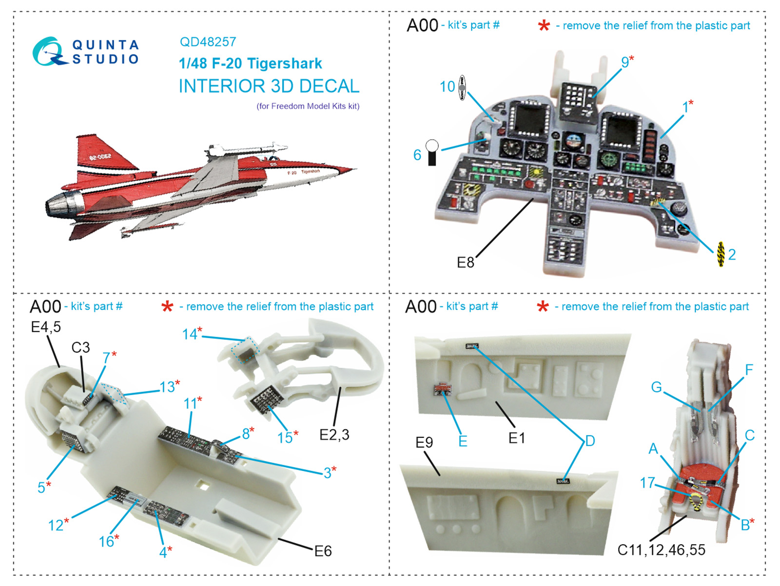 Quinta Studio - 1/48 Northrop F-20A Tiger 3D-Printed & coloured Interior on decal paper (for Freedom Model kits)