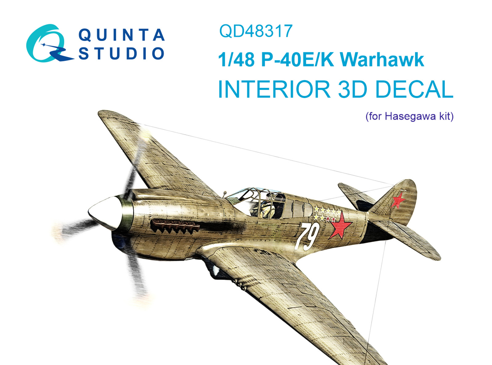Quinta Studio - 1/48 Curtiss P-40E/P-40K Kittyhawk/Warhawk 3D-Printed & coloured Interior on decal paper (designed be used with Hasegawa kits)