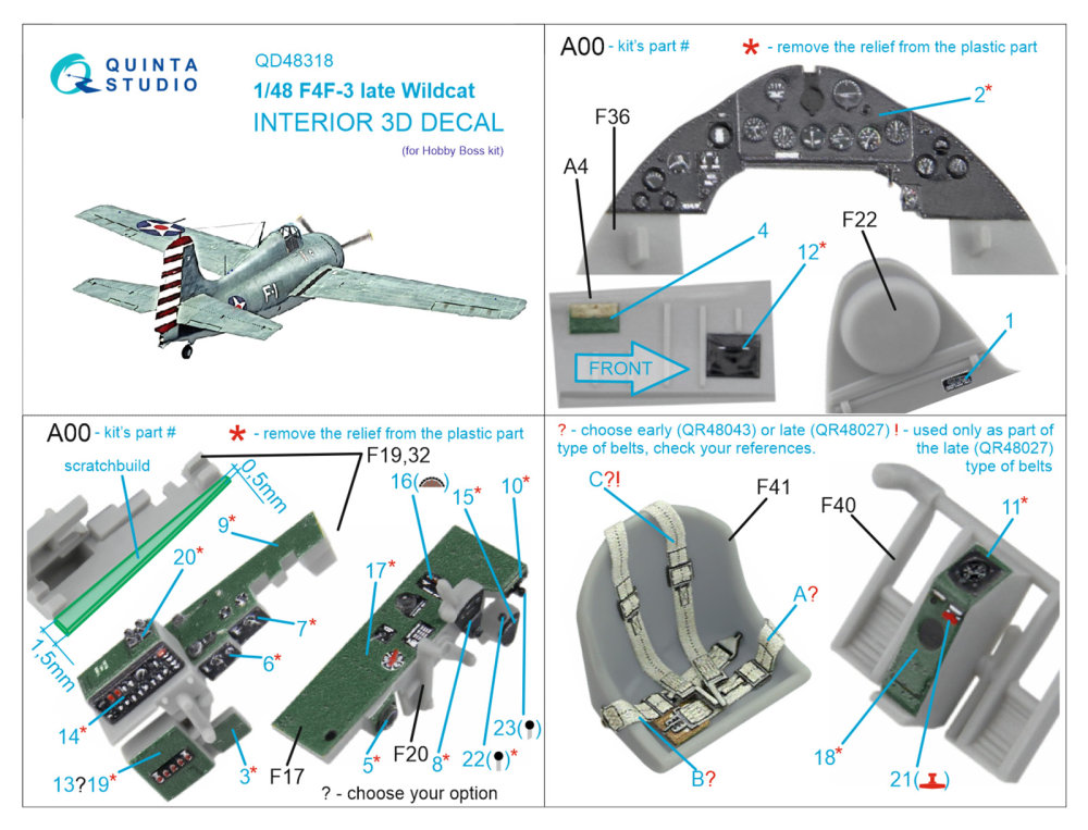 QUINTA STUDIO - 1/48 F4F-3 late 3D-Printed & color Interior (HOBBYB)