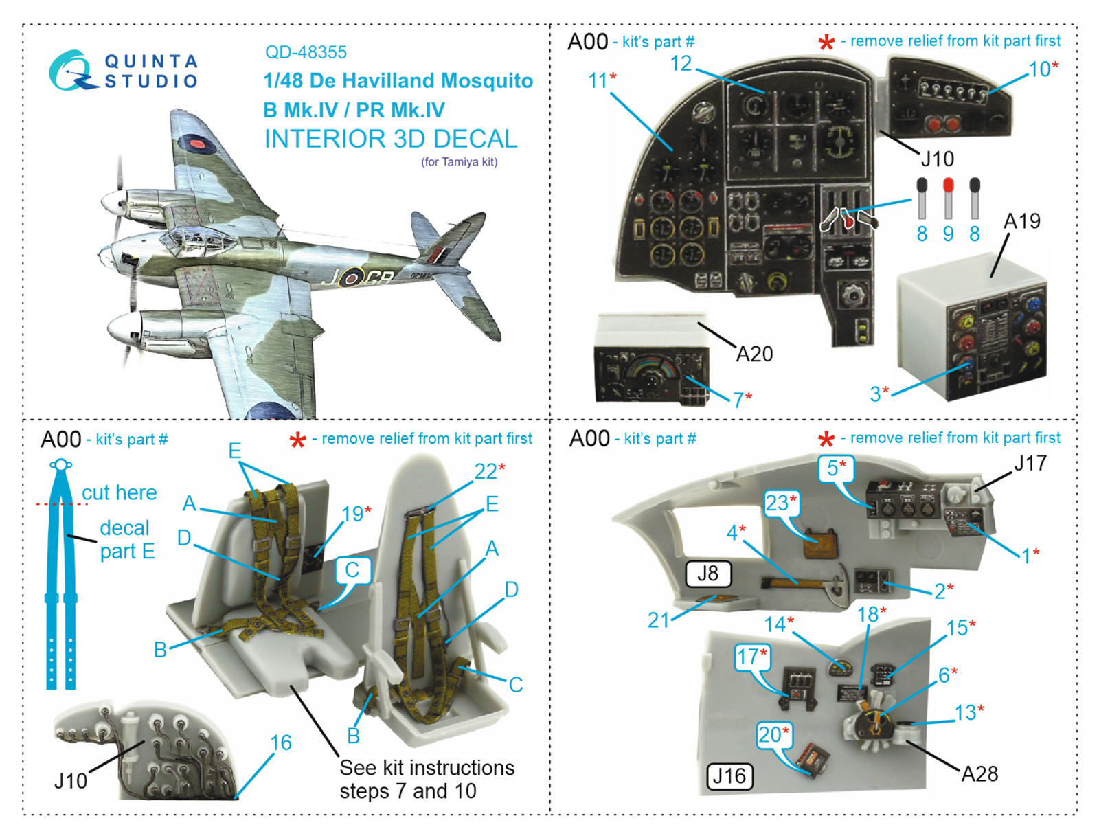 Quinta Studio - 1/48 De Havilland Mosquito B Mk.IV / Pr Mk.IV 3D-Printed & coloured Interior on decal paper (designed be used with Tamiya kits)