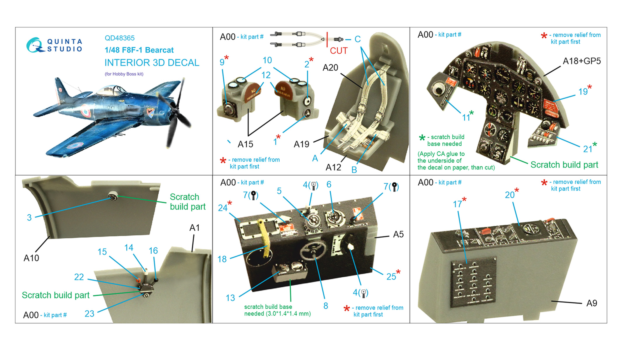Quinta Studio - 1/48 F8F-1 Bearcat Interior on decal paper for Hobby Boss