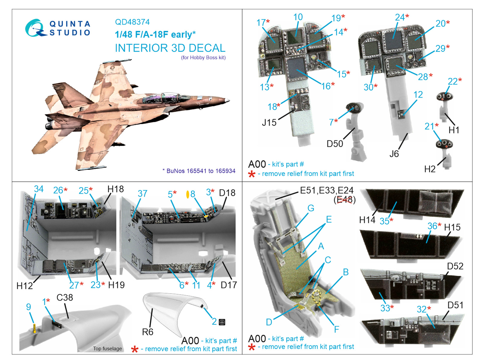 Quinta Studio - 1/48 F/A-18F early Interior on decal paper for Hobby Boss