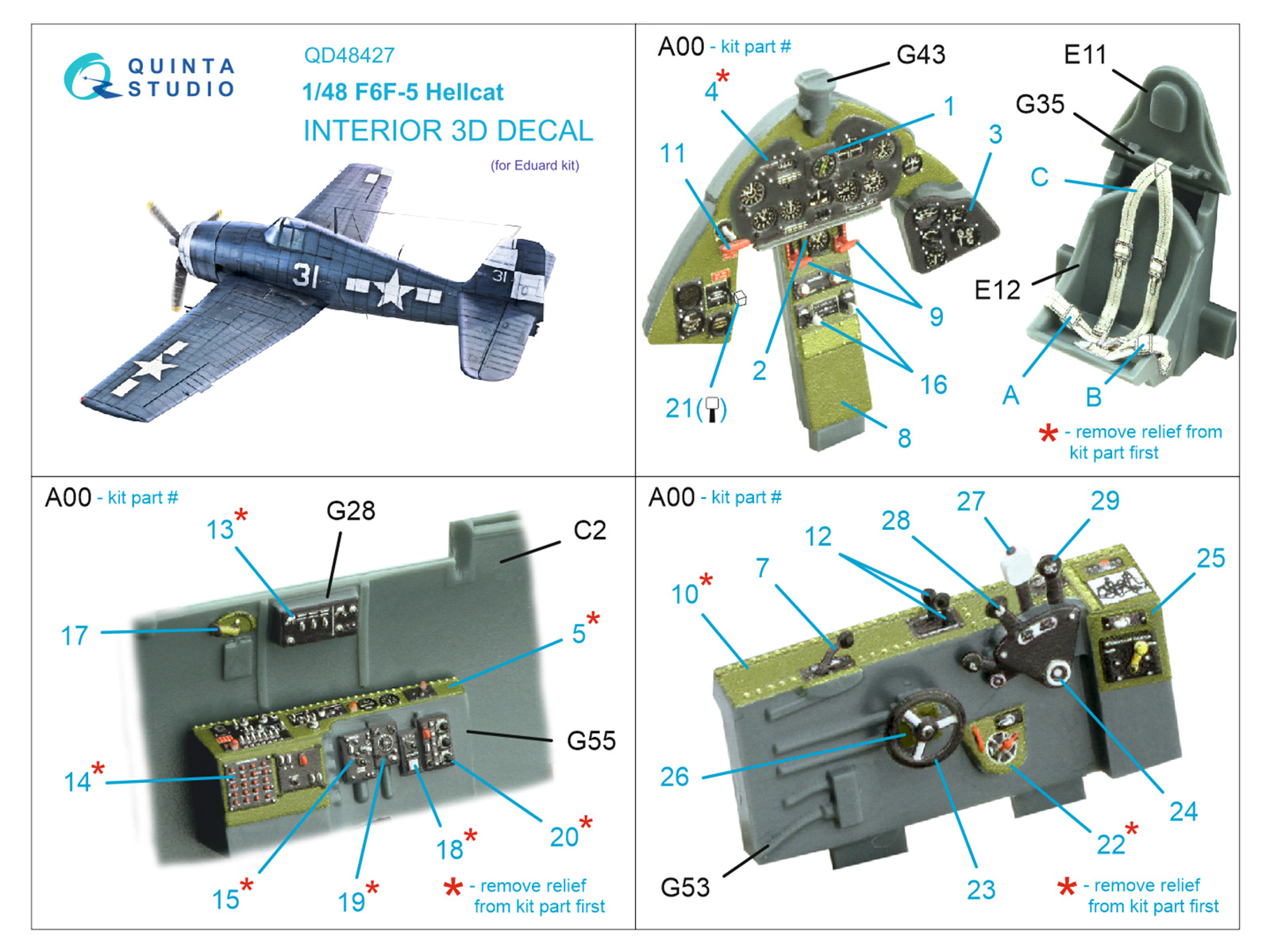 Quinta Studio - 1/48 F6F-5 Hellcat Interior for Eduard