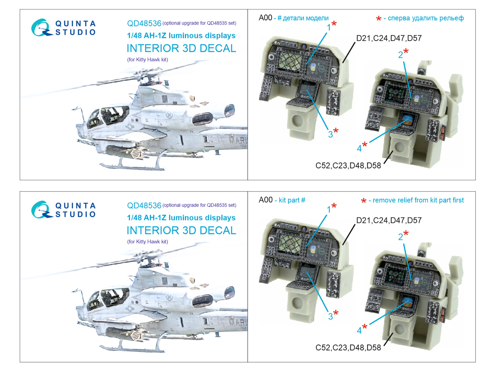 Quinta Studio - 1/48 Bell AH-1Z Zulu Cobra/Viper luminous displays 3D-Printed & coloured Interior KittyHawk
