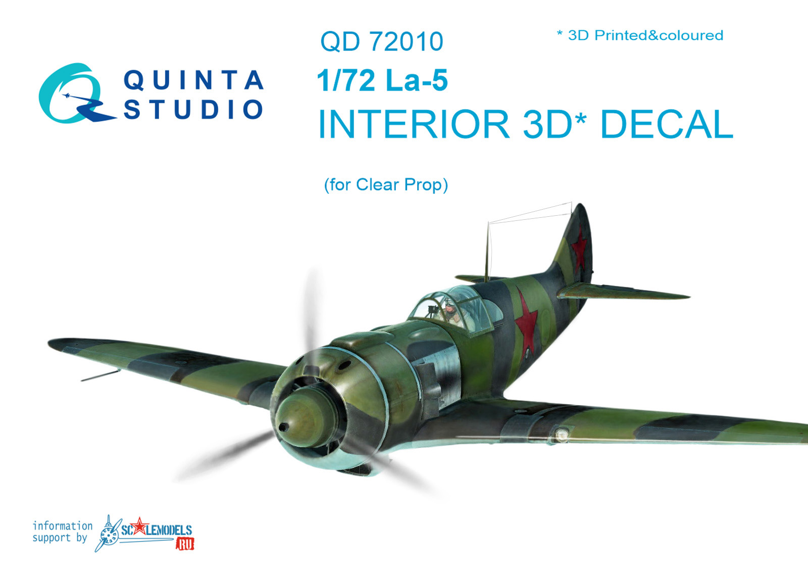 Quinta Studio - 1/72 Lavochkin La-5 3D-Printed & coloured Interior on decal paper (for Clear Prop kits)