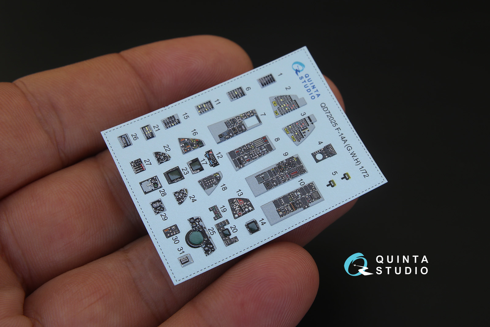 Quinta Studio - 1/72 Grumman F-14A Tomcat 3D-Printed & coloured Interior on decal paper (for Great Wall Hobby kits)