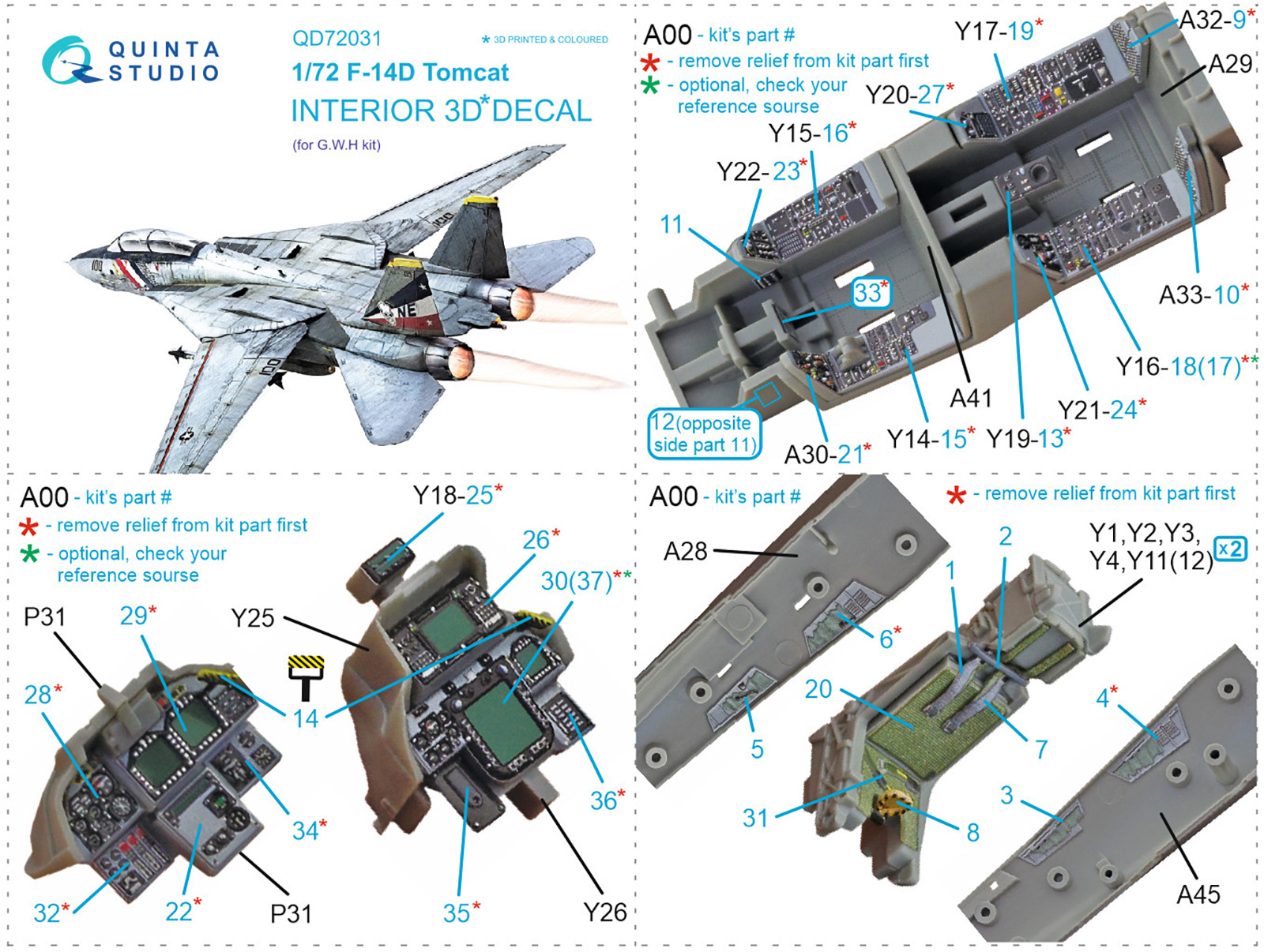 QUINTA STUDIO - 1/72 F-14D 3D-Print & color Interior (GWH)