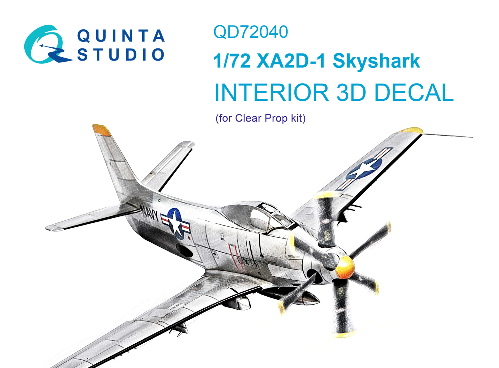 Quinta Studio - 1/72 Douglas XA2D-1 Skyshark 3D-Printed & coloured Interior on decal paper (for Clear Prop kits)