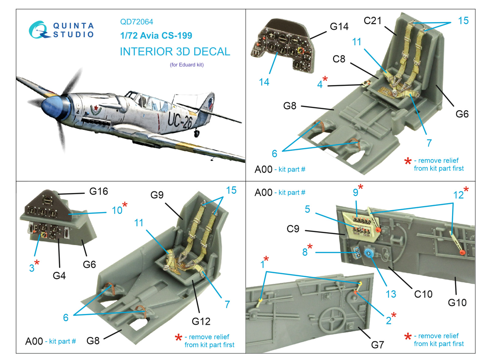 Quinta Studio - 1/72 Avia CS-199 3D-Printed & coloured Interior on decal paper (for Eduard kits)