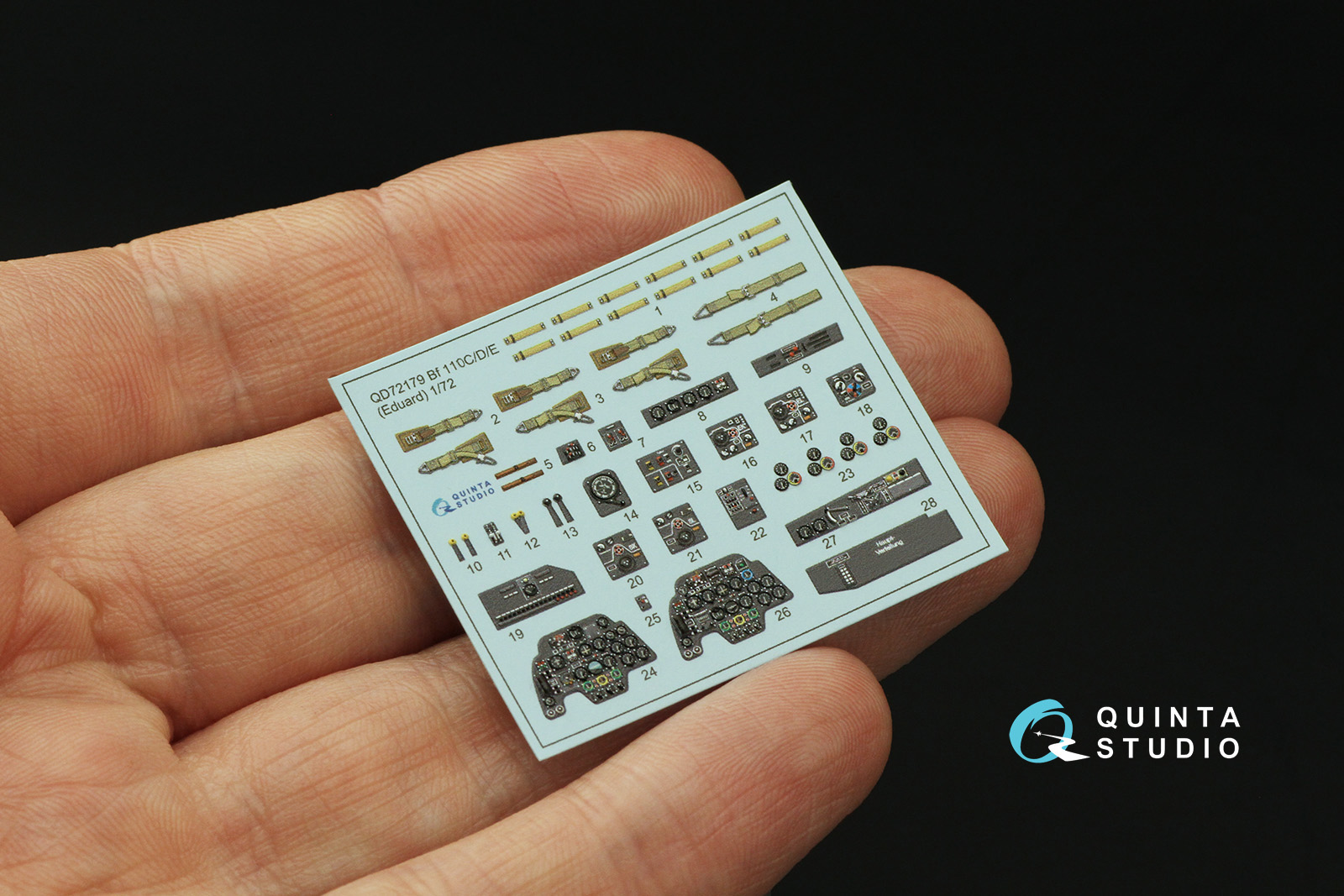 Quinta Studio - 1/72 Messerschmitt Bf-110C/Bf-110D/Bf-110E 3D-Printed coloured Interior for Eduard