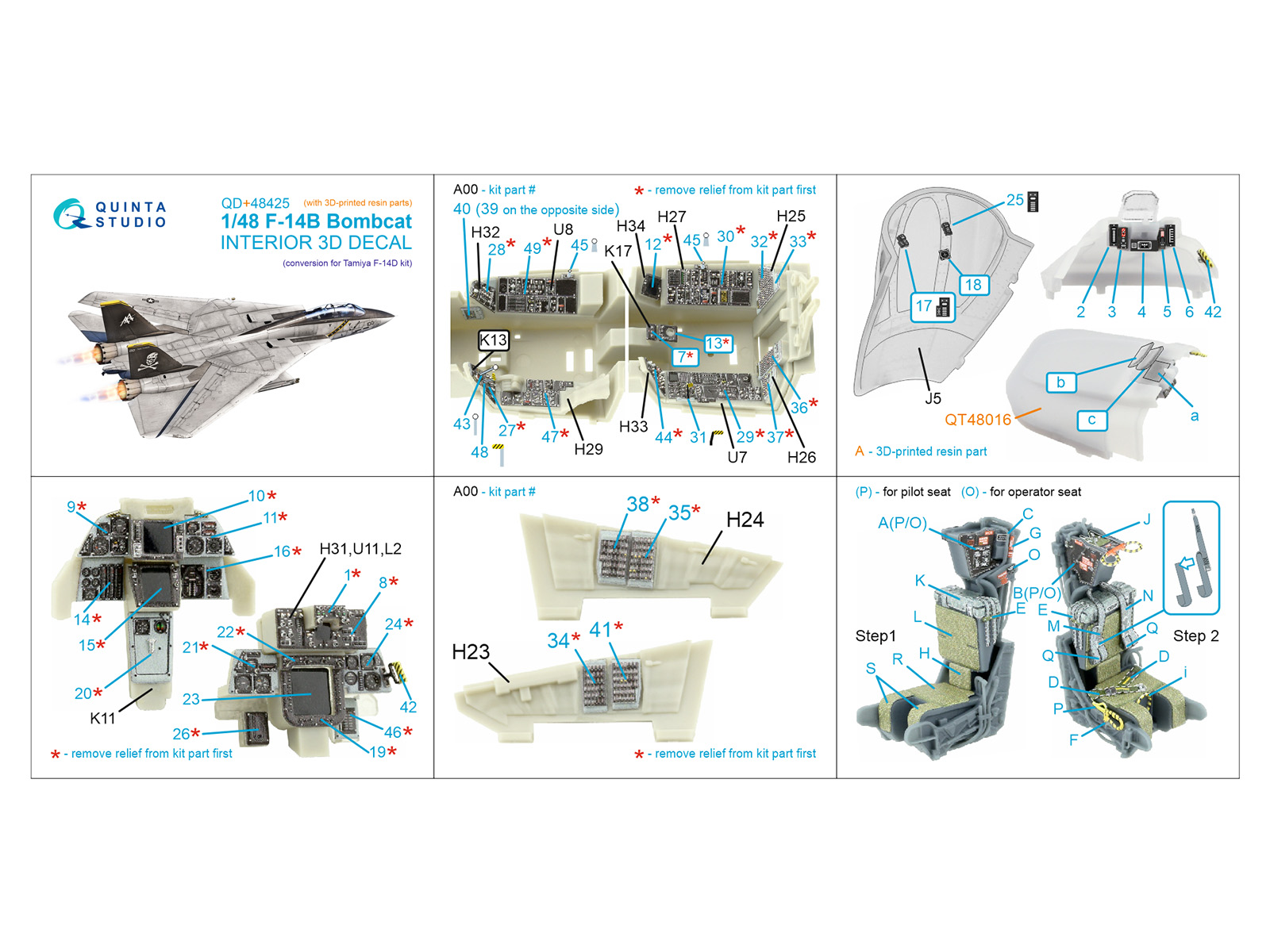 Quinta Studio - 1/48 Grumman F-14B Tomcat 3D-Printed & coloured Interior (conversion for F-14D (for Tamiya kits) with 3D-printed resin parts