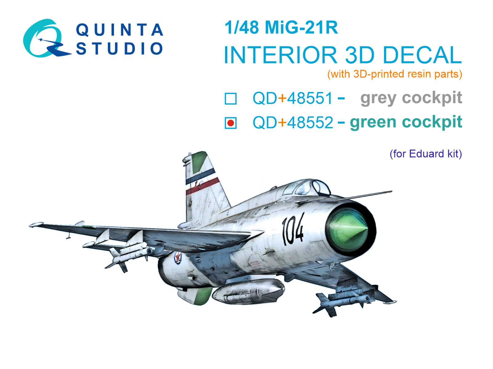 QUINTA STUDIO - 1/48 MiG-21R green panels 3D-Pr. & color Int. for Eduard