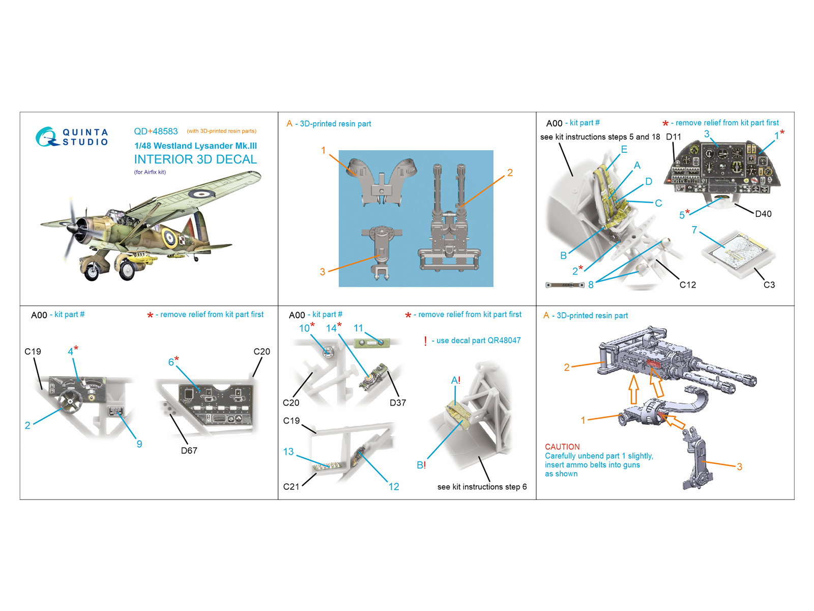 Quinta Studio - 1/48 Westland Lysander Mk.III 3D-Printed & coloured Interior for Airfix with 3D-printed resin parts