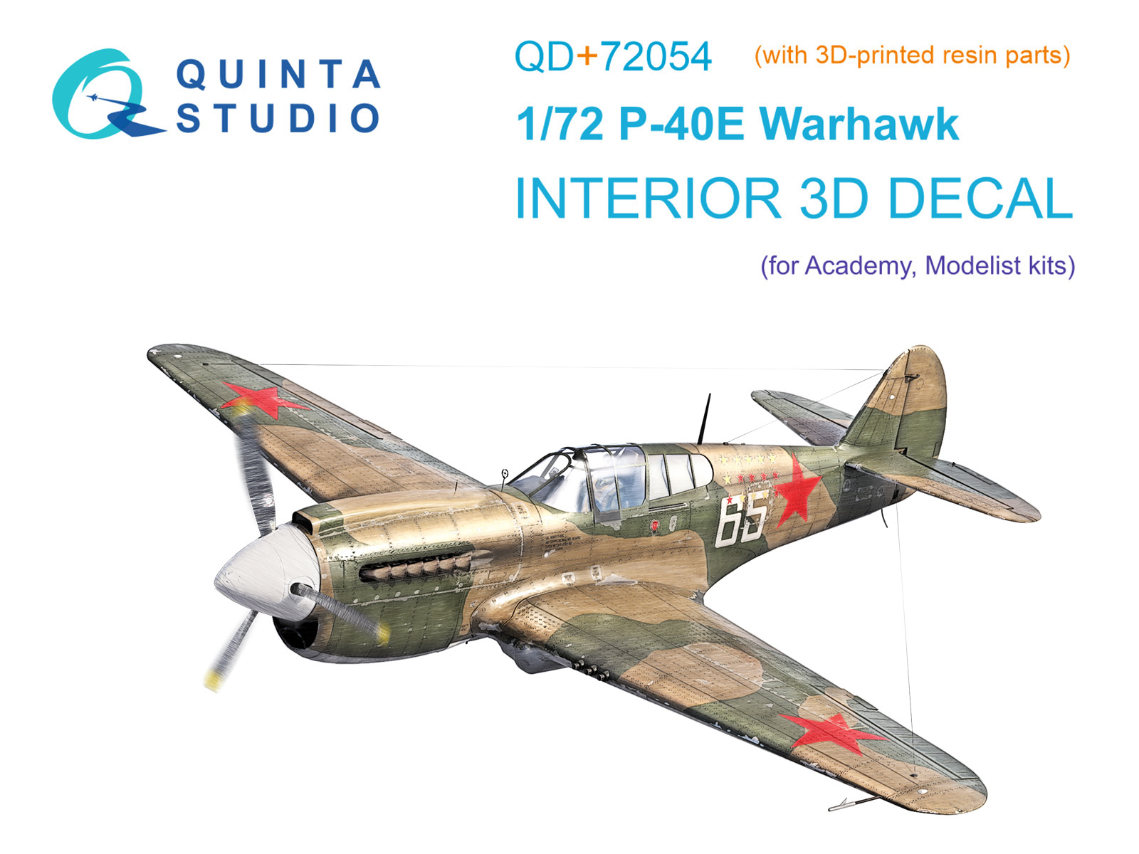 Quinta Studio - 1/72 Curtiss P-40E Warhawk 3D-Printed & coloured Interior (for Academy and Modelist kits) with 3D-printed resin parts