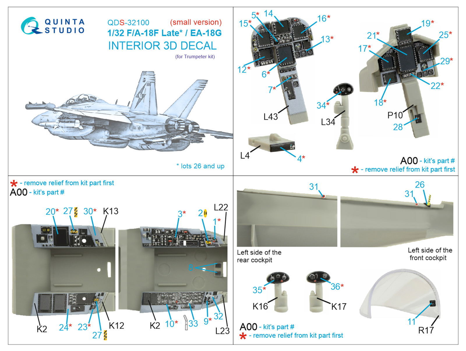 Quinta Studio - 1/32 Boeing F/A-18F Hornet late / EA-18G 3D-Printed & coloured Interior on decal paper (for Trumpeter kits) (SMALL VERSION)