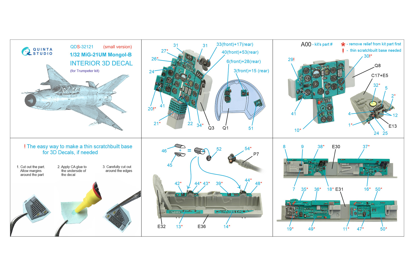 QUINTA STUDIO - 1/32 MiG-21UM 3D-Printed & color Interior (TRUMP) SMALL