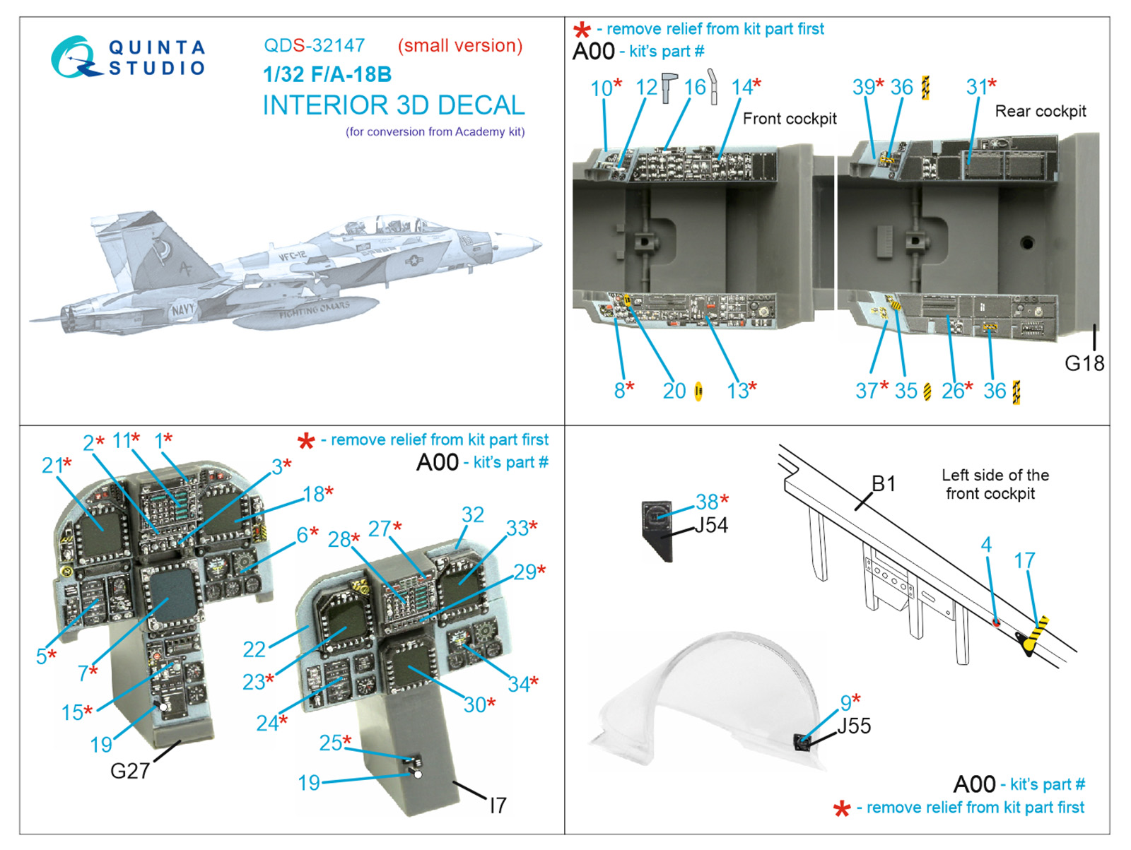 QUINTA STUDIO - 1/32 F/A-18B 3D-Printed & color Interior (ACAD) SMALL
