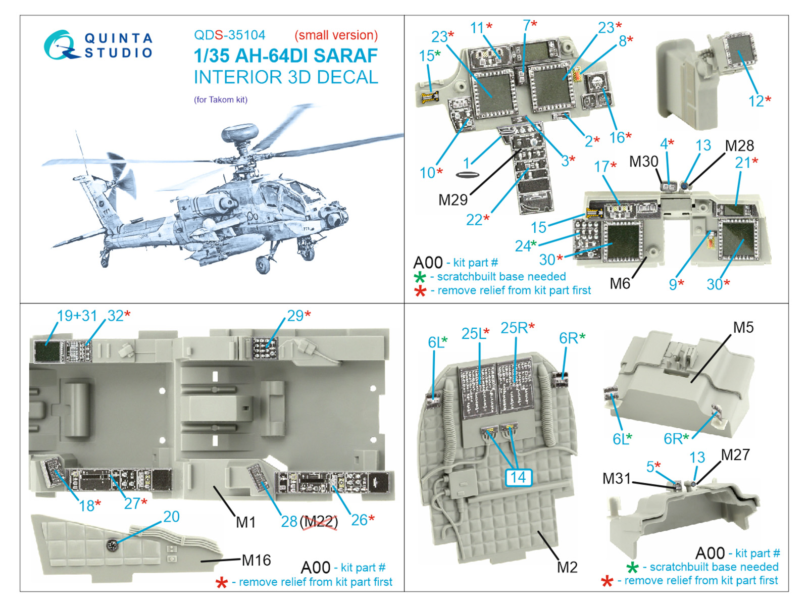 Quinta Studio - 1/35 Boeing/Hughes AH-64DI Saraf 3D-Printed & coloured Interior on decal paper (for Takom kits) (Small version)