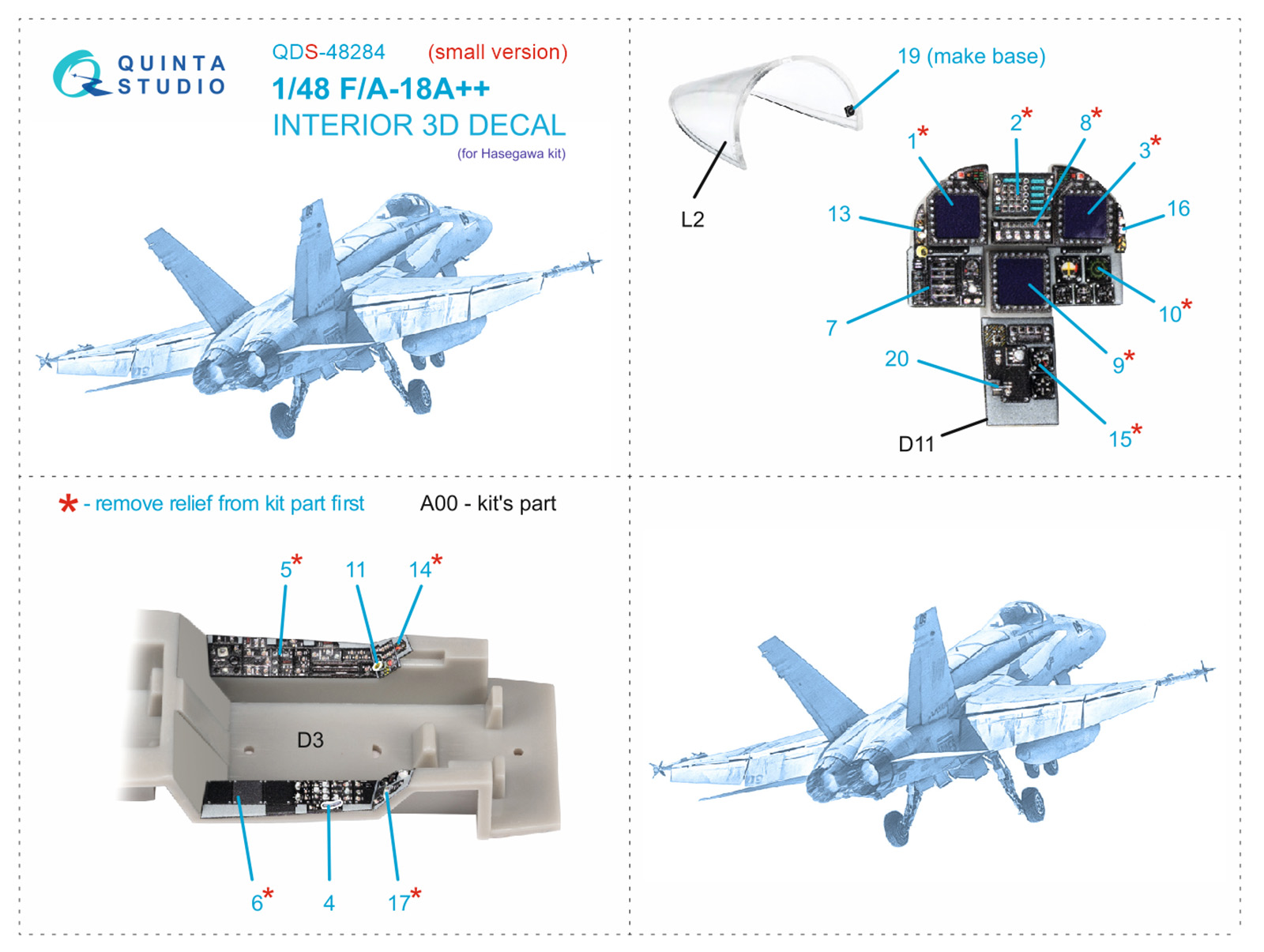 Quinta Studio - 1/48 F/A-18A++ 3D-Printed & coloured Interior on decal paper (for Hasegawa kits) (SMALL VERSION)