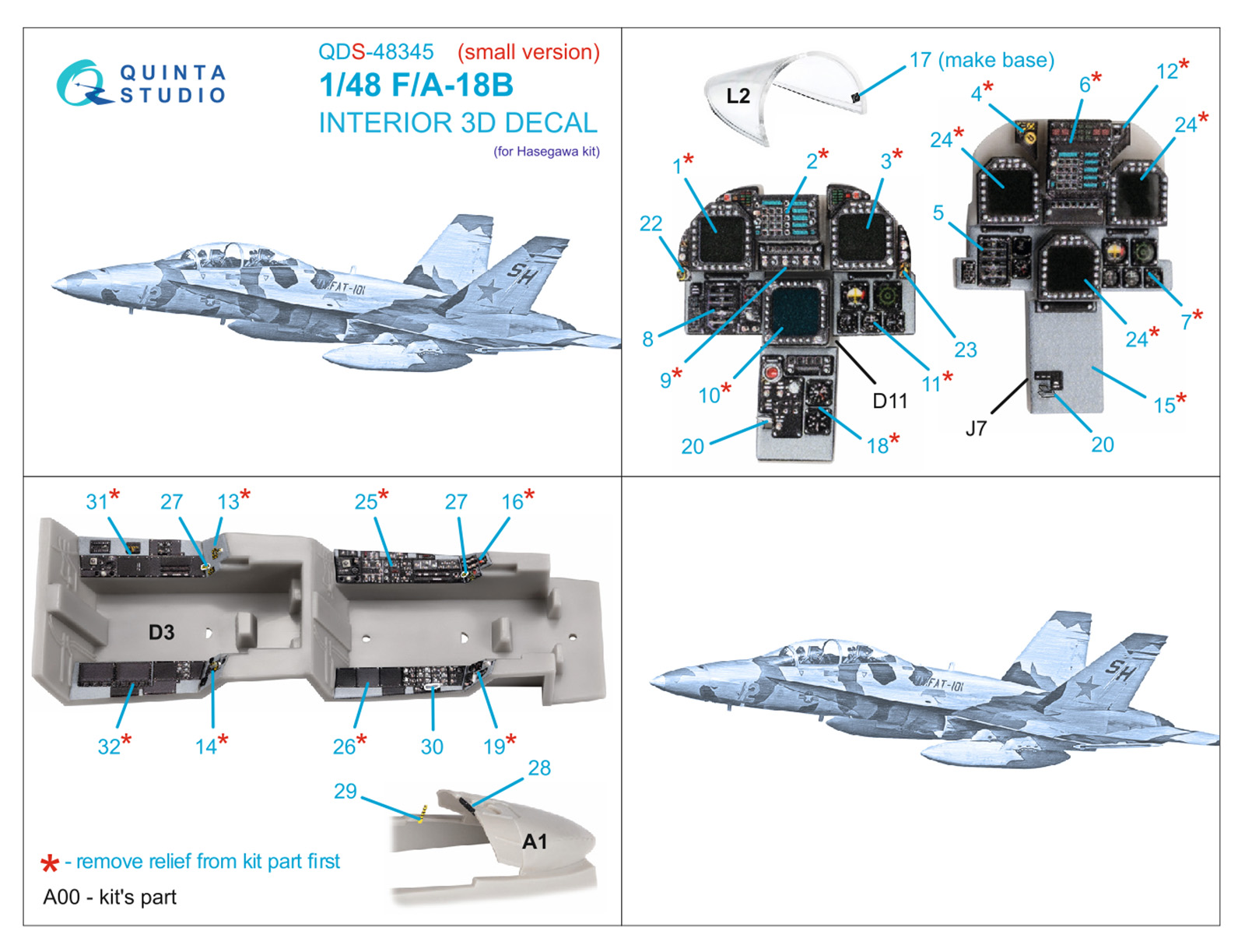 QUINTA STUDIO - 1/48 F/A-18B 3D-Printed & color Interior (HAS) Small