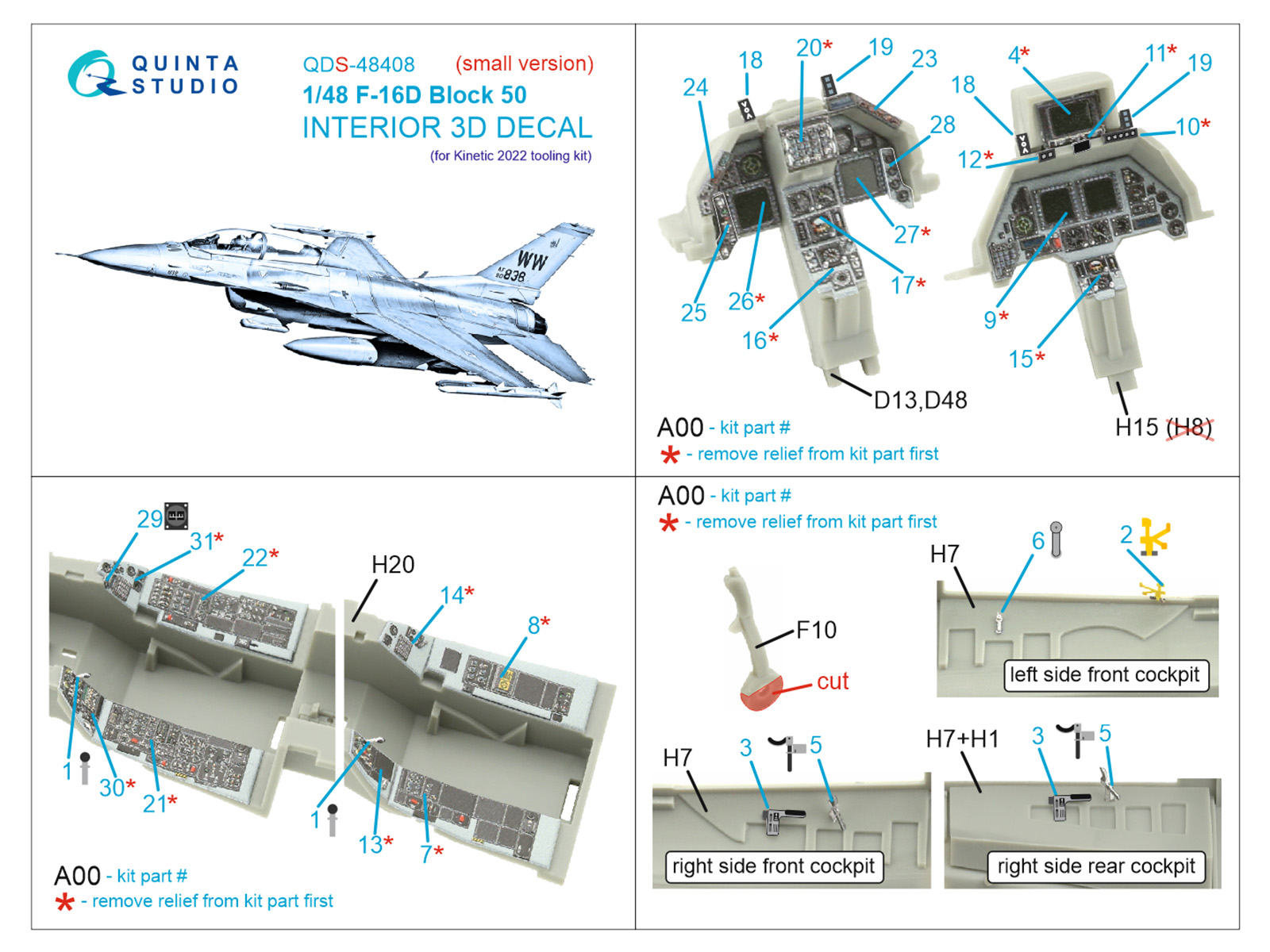 Quinta Studio - 1/48 F-16D block 50 Interior on decal paper for Kinetic 2022 tool for Small version