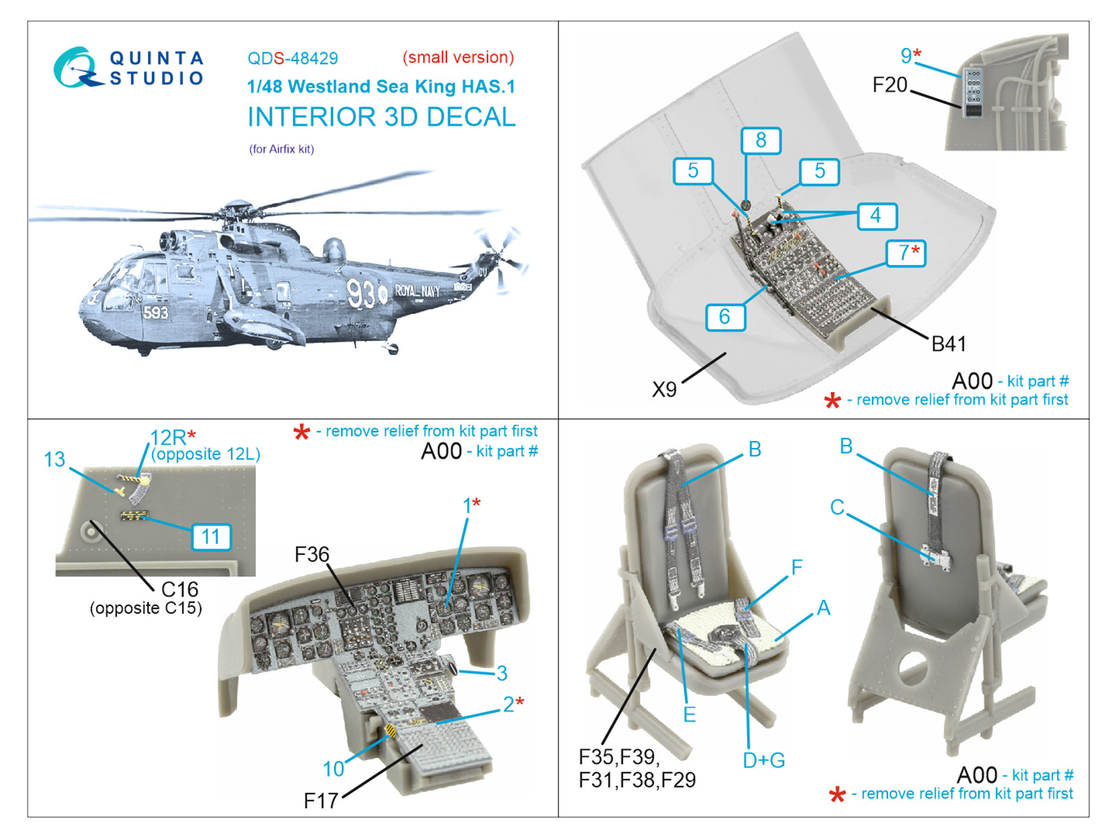 Quinta Studio - 1/48 Westland Sea King HAS.1 Interior Small version for Airfix