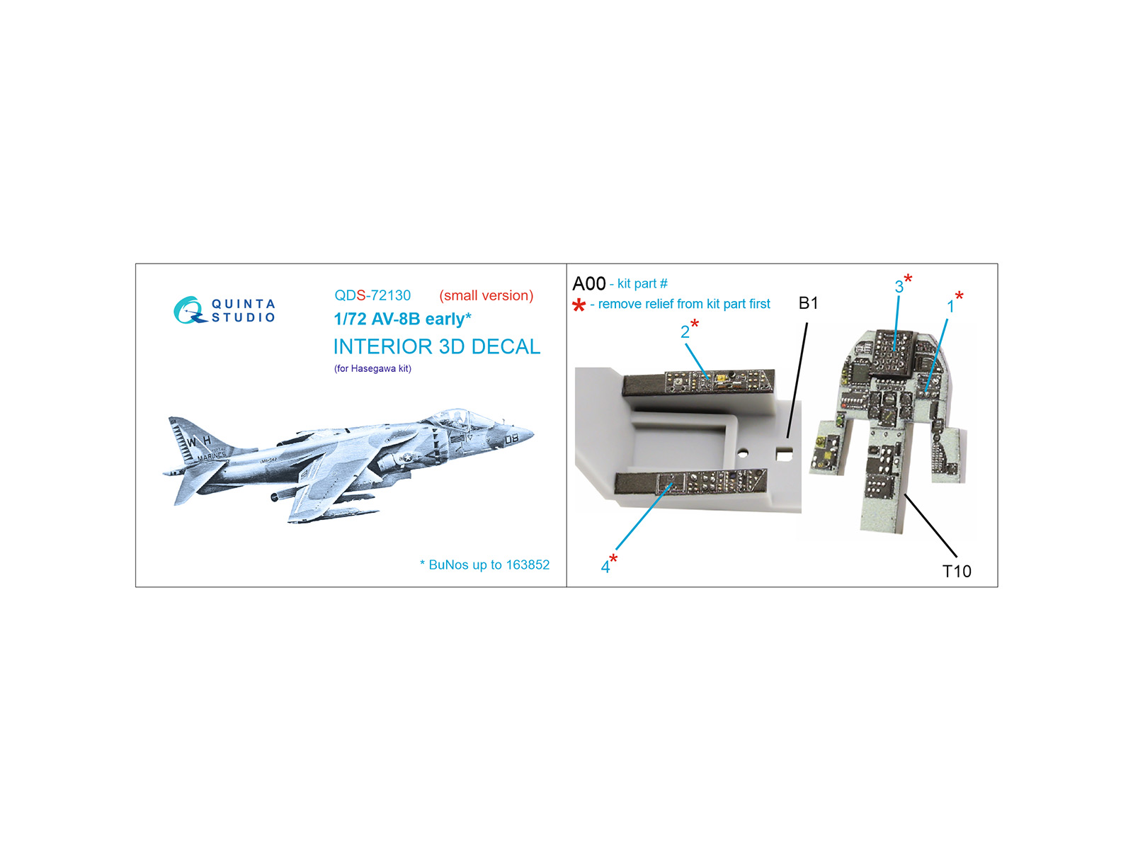 Quinta Studio - 1/72 McDonnell-Douglas AV-8B early 3D-Printed & coloured Interior (for Hasegawa kits), Small version