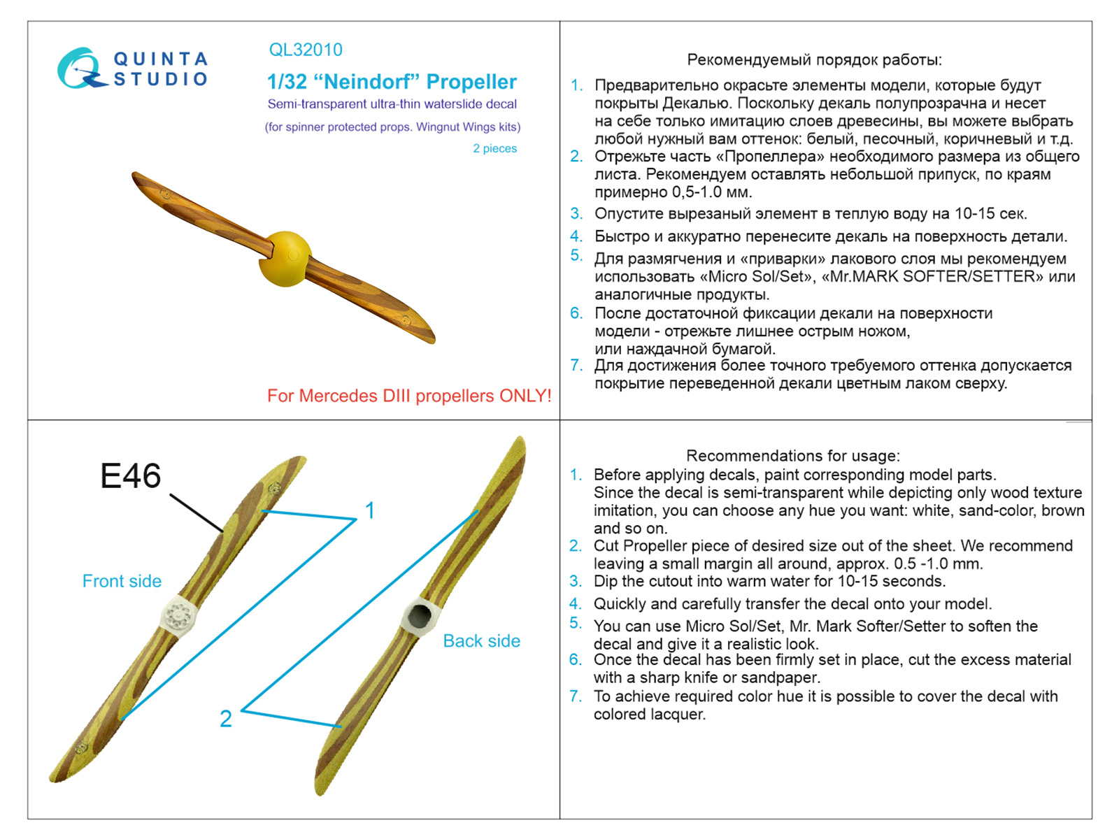 QUINTA STUDIO - 1/32 Wooden Propellers Neindorf WNW