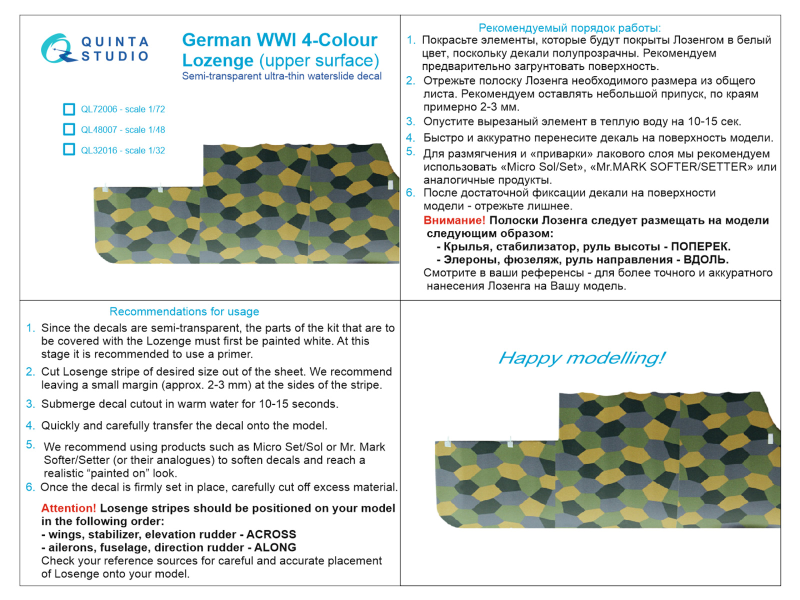 Quinta Studio - 1/72 German WWI 4-Colour Lozenge for upper surface