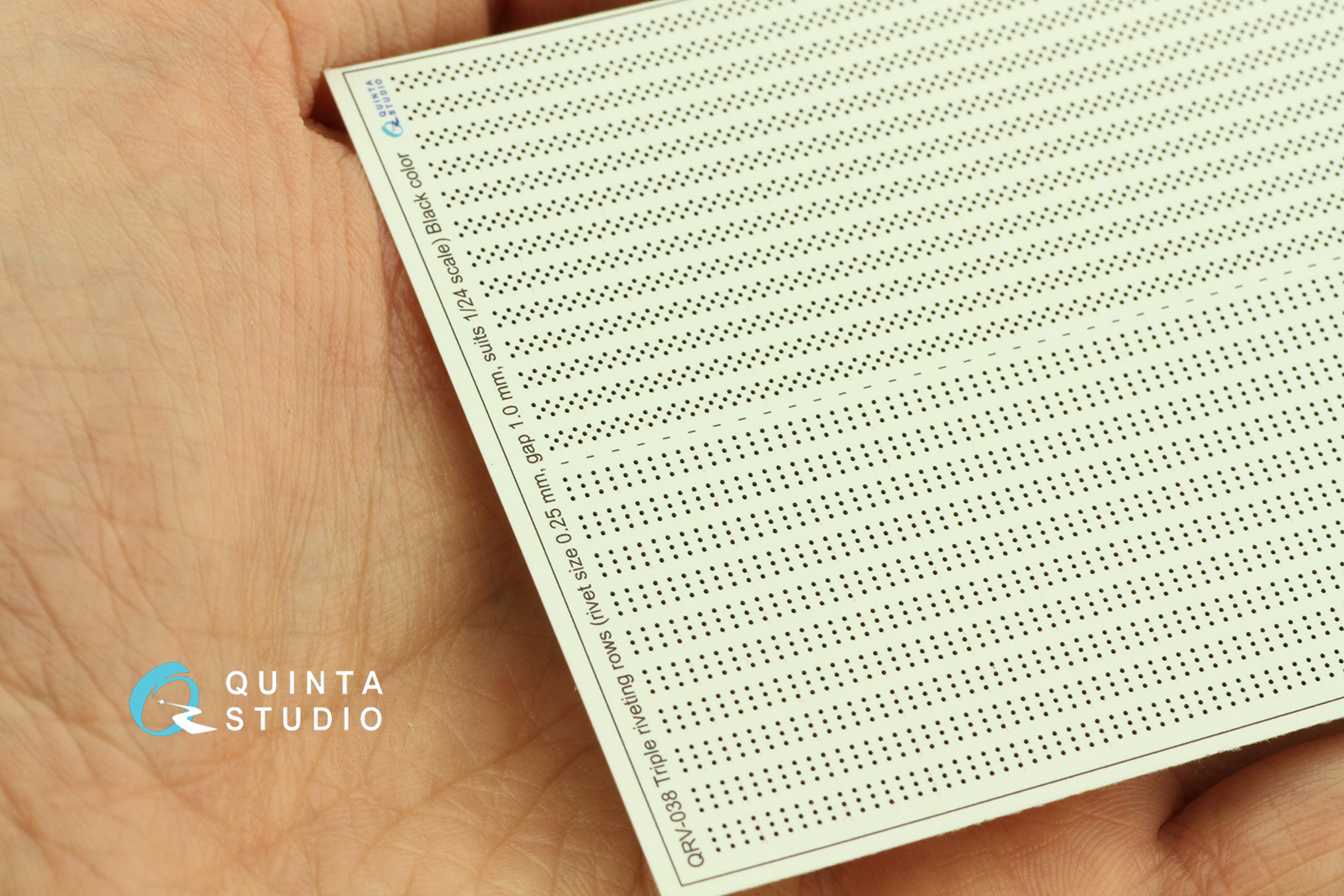 Quinta Studio - Triple riveting rows (rivet size 0.25 mm, gap 1.0 mm, suits 1/24 scale), Black color, total length 3.2 m/10.5 ft
