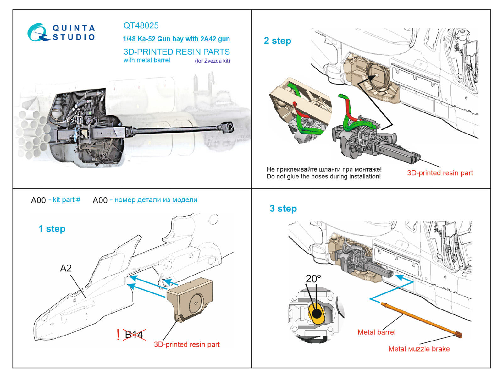 Quinta Studio - 1/48 Kamov Ka-52 Gun bay with 2A42 gun (designed top be used with Zvezda kits)