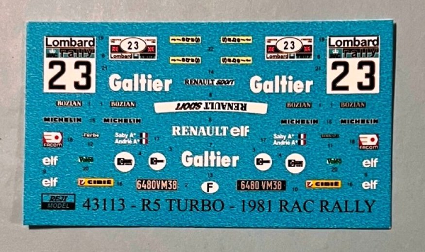 REJI MODEL - 1/43 Renault 5 Turbo RAC Rally 1981