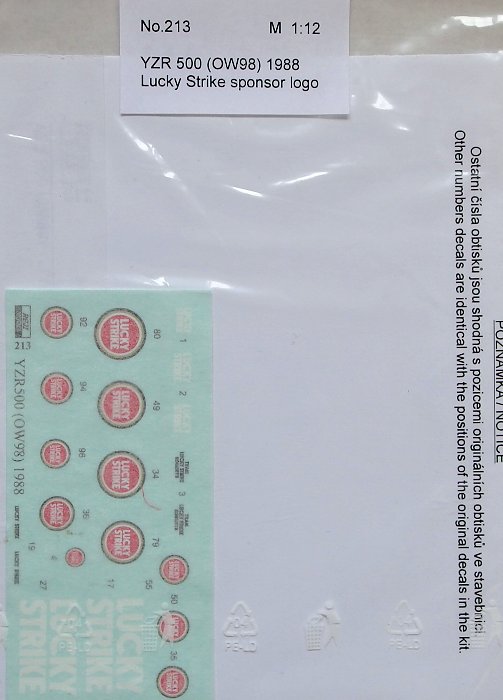 REJI MODEL - 1/12 YZR 500 (OW98) 1988 Lucky Strike sponsor logo