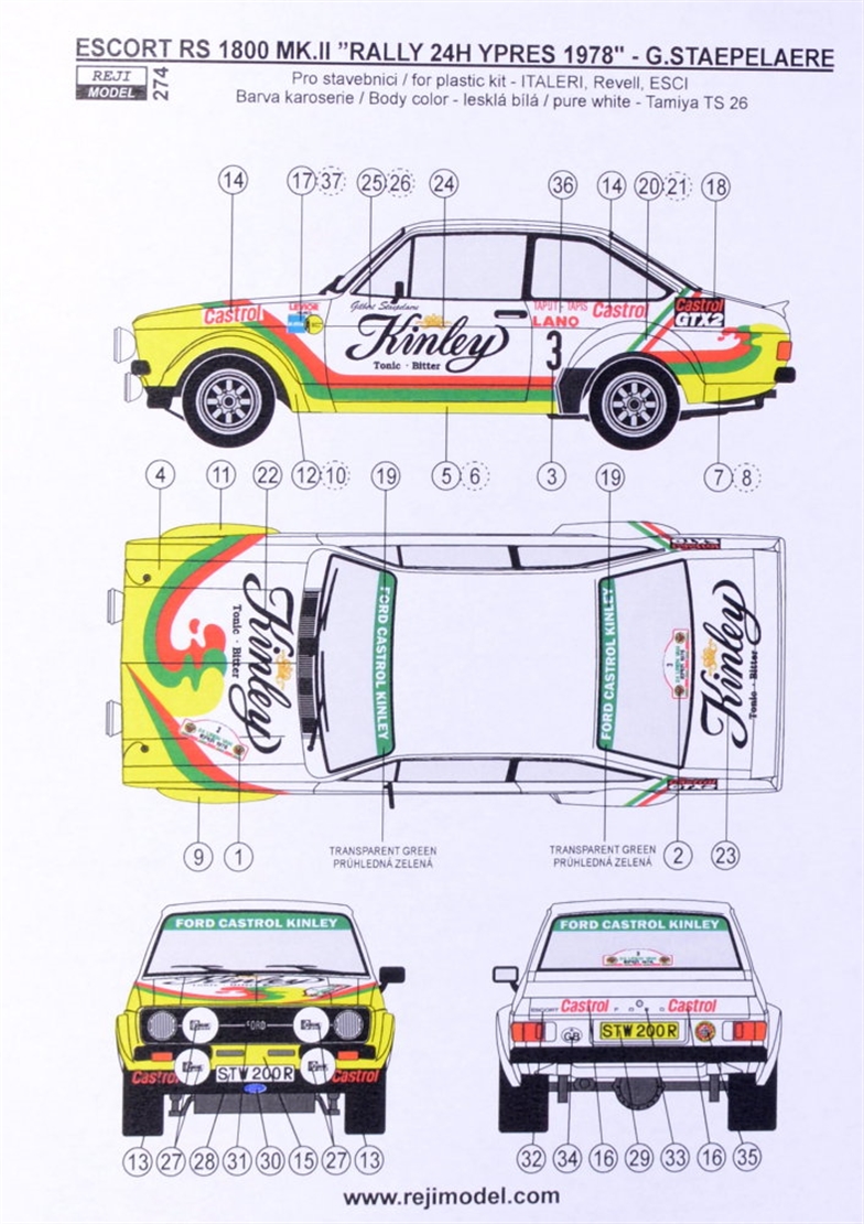 REJI MODEL - 1/24 Ford Escort Mk.II RS Ypres Rallye 1978