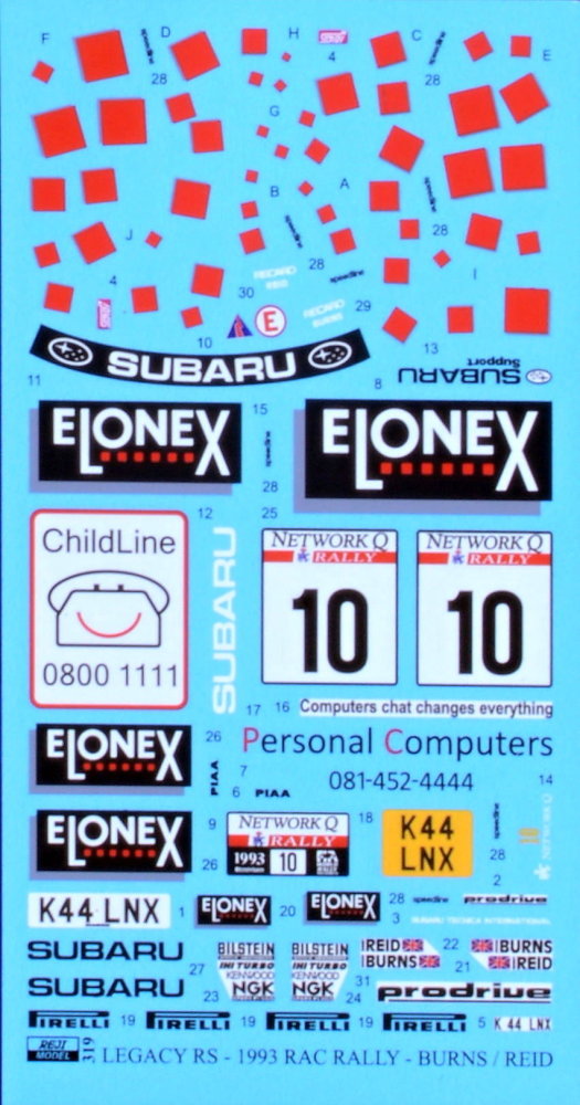 REJI MODEL - 1/24 Transkit Subaru Legacy RS RAC Rally 1993 decals and wheels